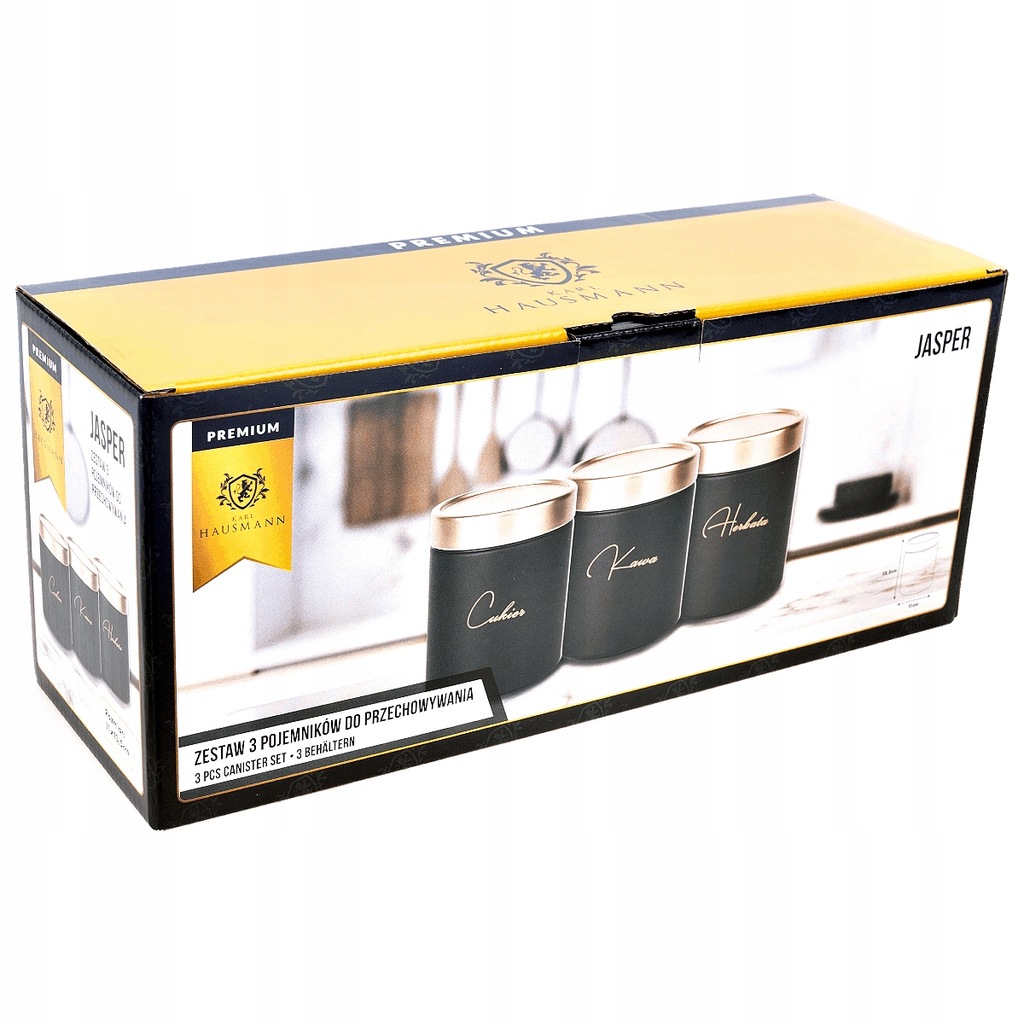 Стильний і сучасний комплект складається з трьох контейнерів. Банки відрізняються унікальною функціональністю. Завдяки друкованим написам кава, чай і цукор завжди будуть під рукою, коли ви захочете приготувати улюблений гарячий напій