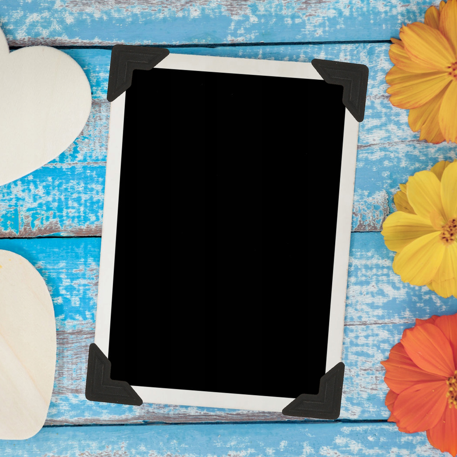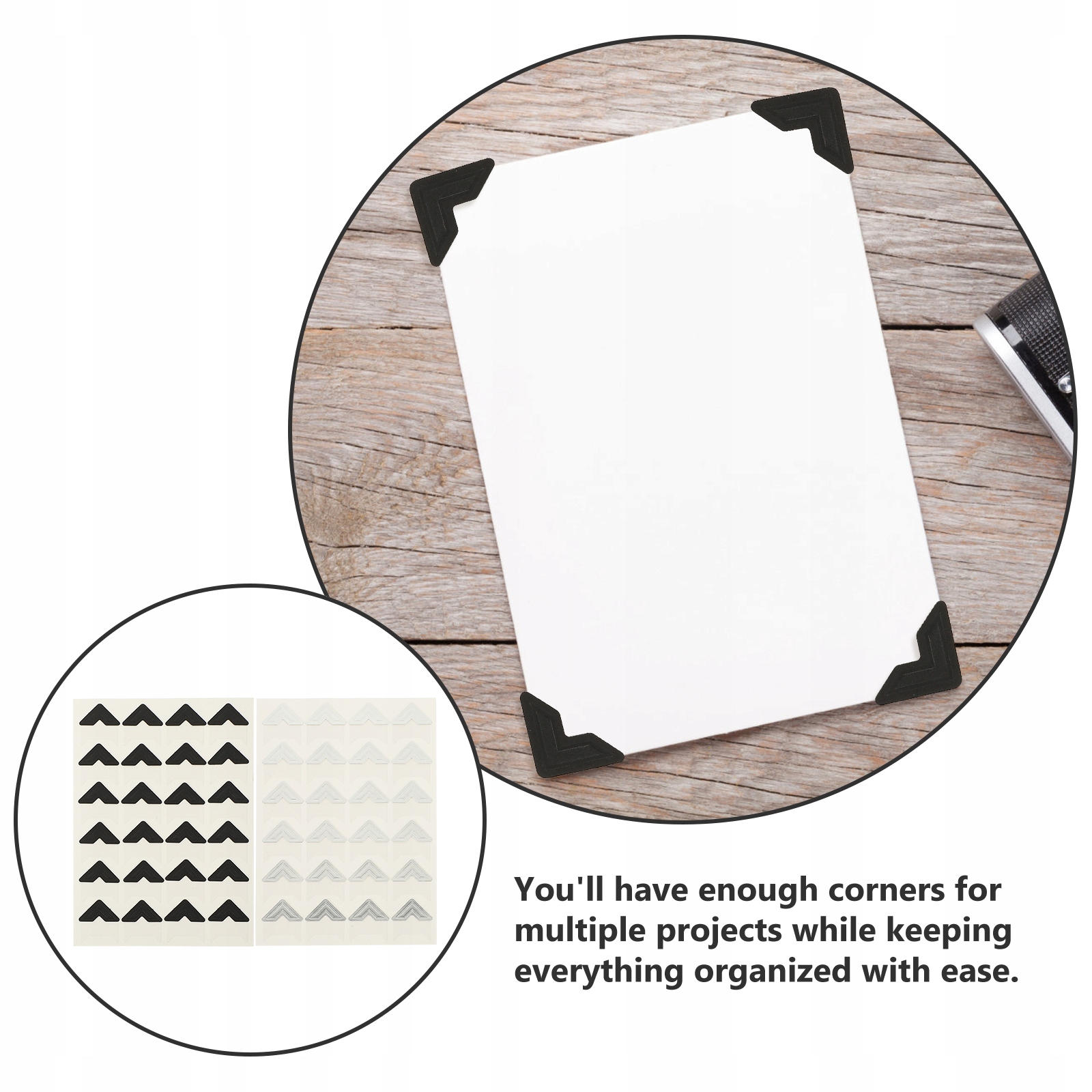 Кожен набір містить достатню кількість куточків для фотографій, які можна легко приклеїти до будь-якої паперової поверхні завдяки самоклеючій основі.