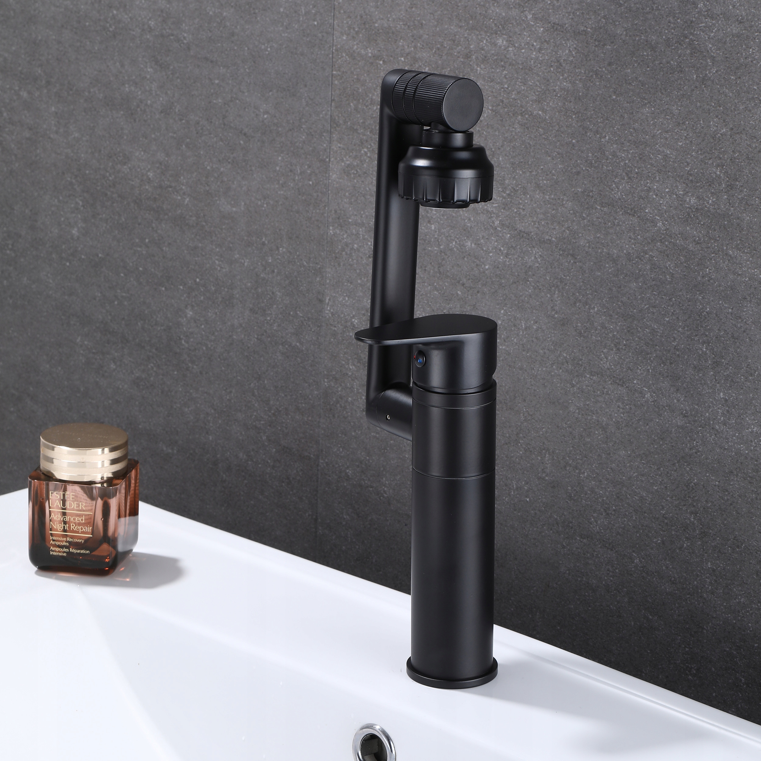 Чорний змішувач для умивальника стоячий, рухомий і обертовий