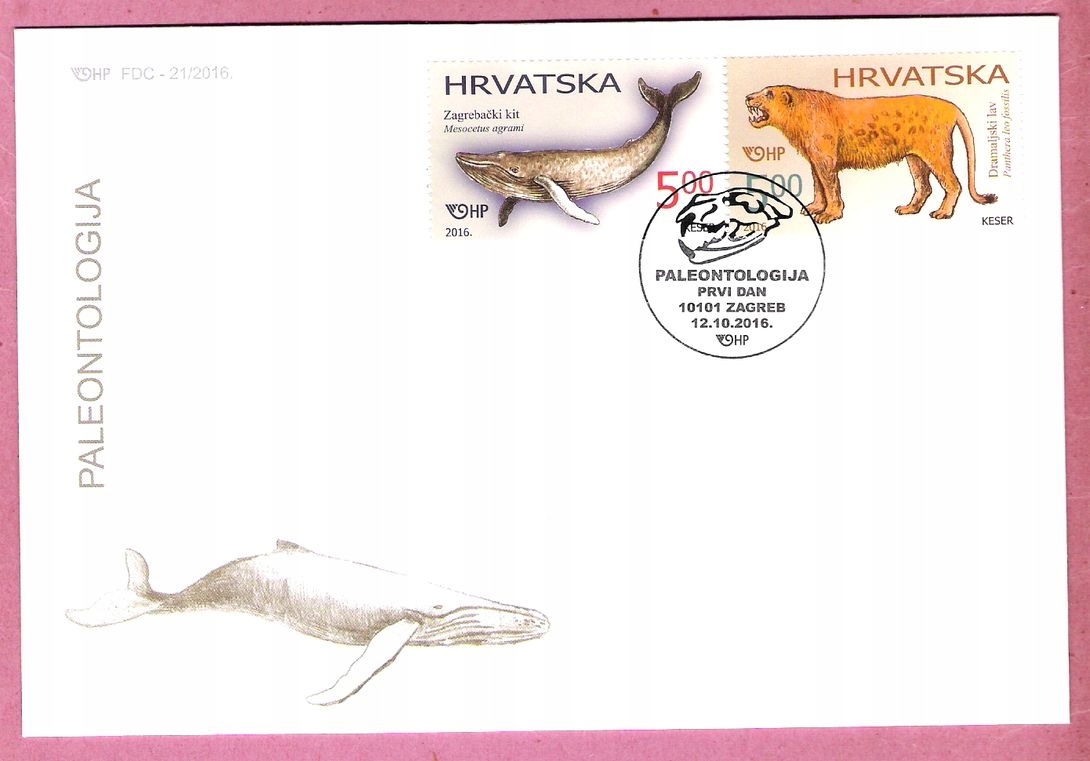 Chorwacja 2016, FDC paleontologia, zwierzęta wymarłe