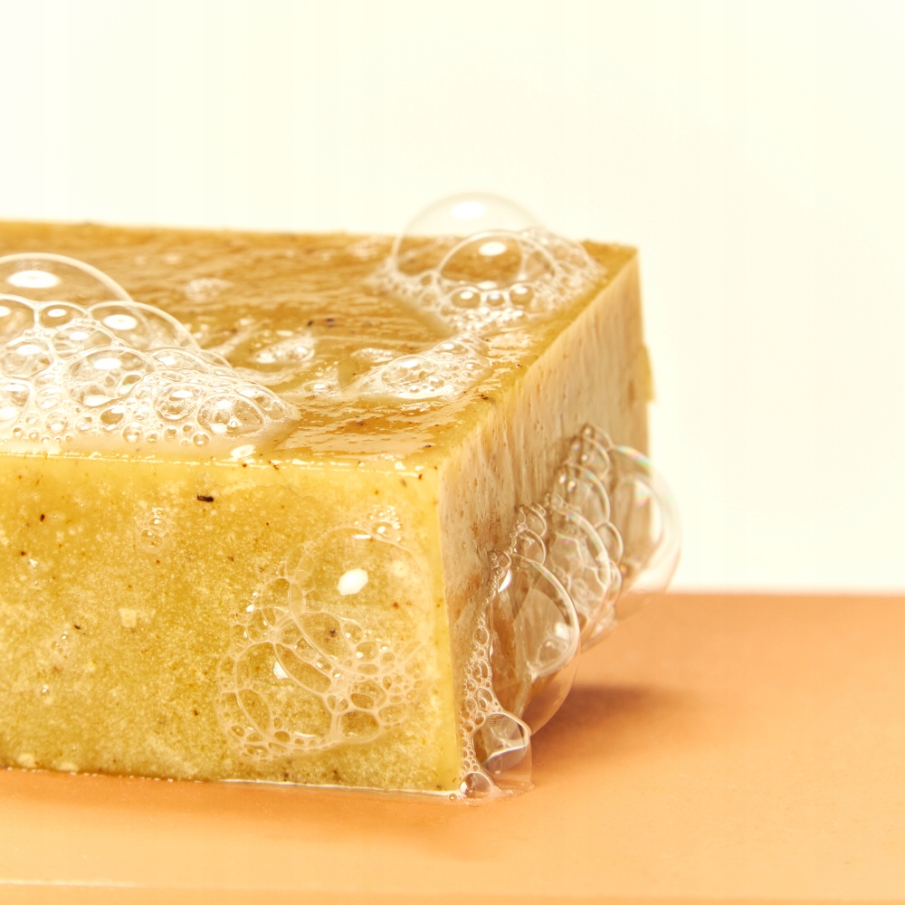 Варто також згадати цікаву структуру мила. ґрунт, висушений розмарин дає йому шорсткість і парадоксально делікатну шорсткість .