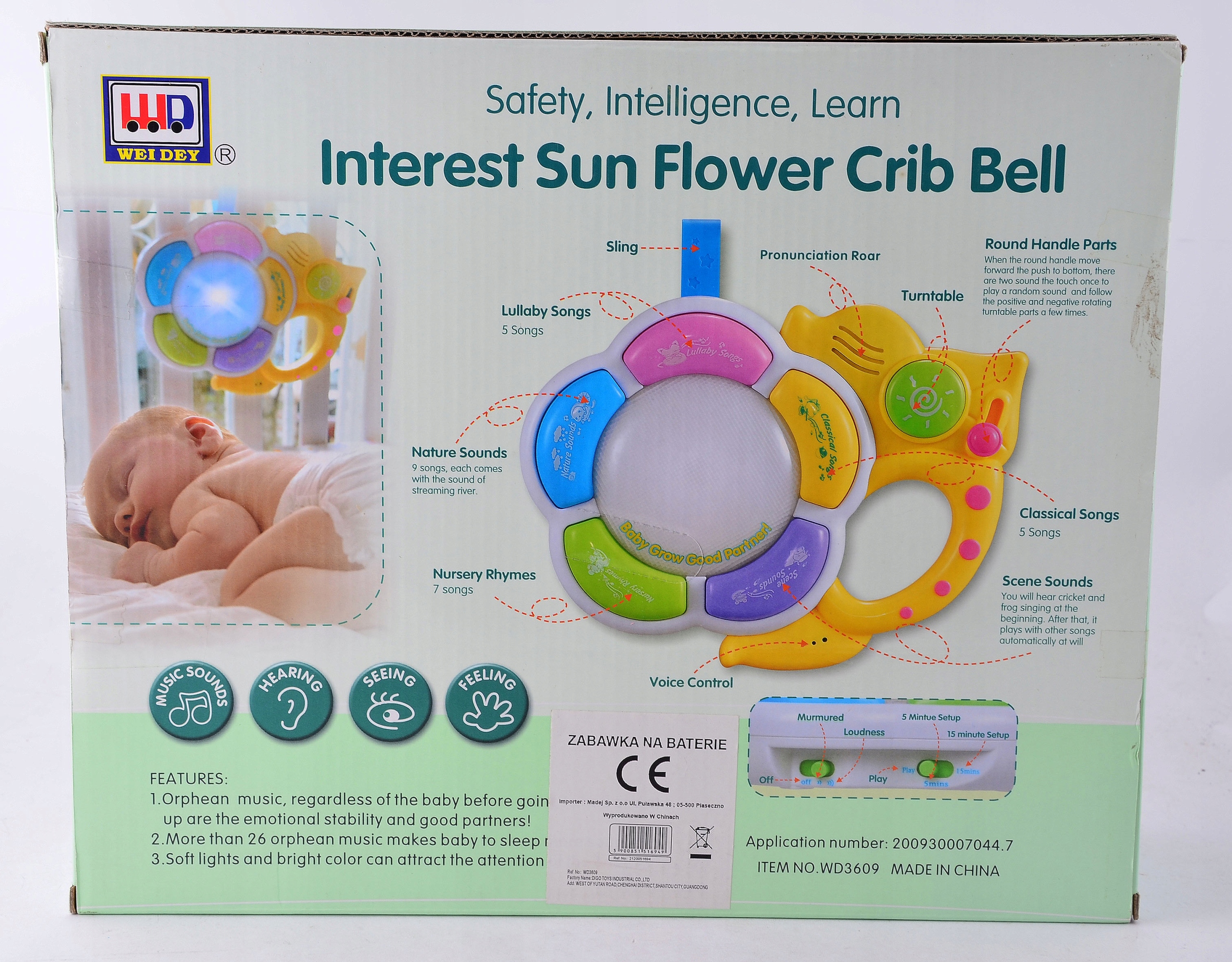 Ця співуча квітка чудово допоможе приспати Вашого малюка. Завдяки багатьом різноманітним мелодіям, розділеним на групи, як-от колискові чи звуки природи, він може замінити спів або наспівування колискових.