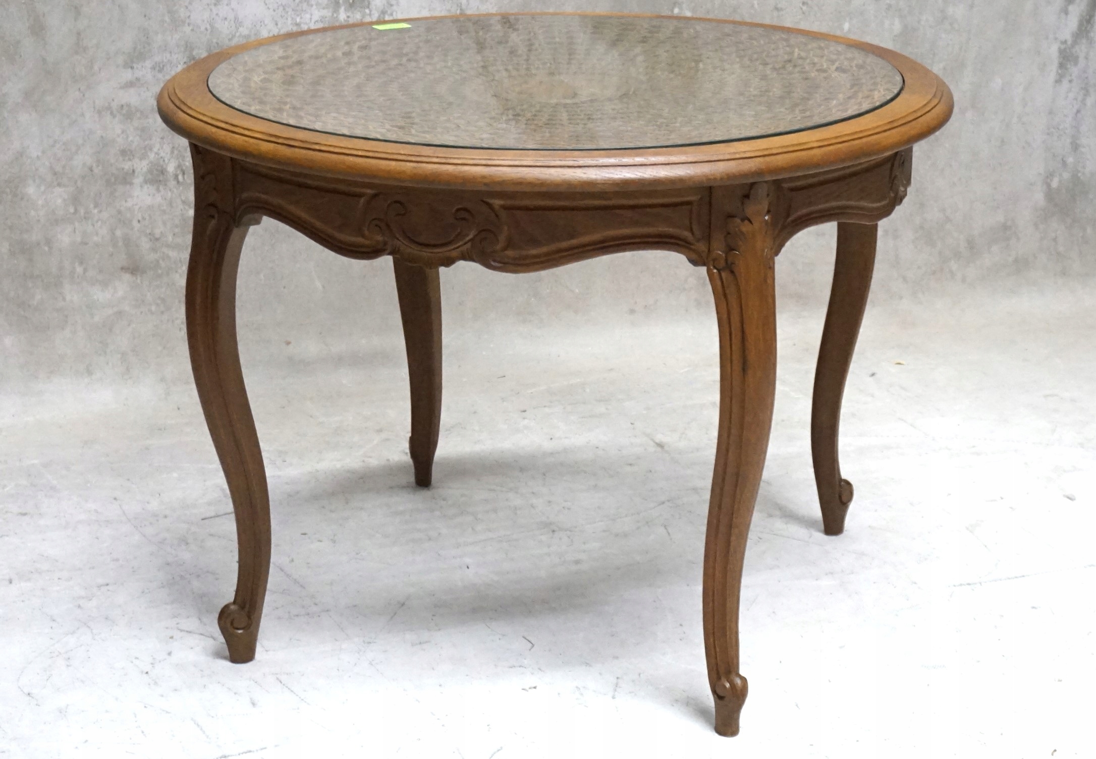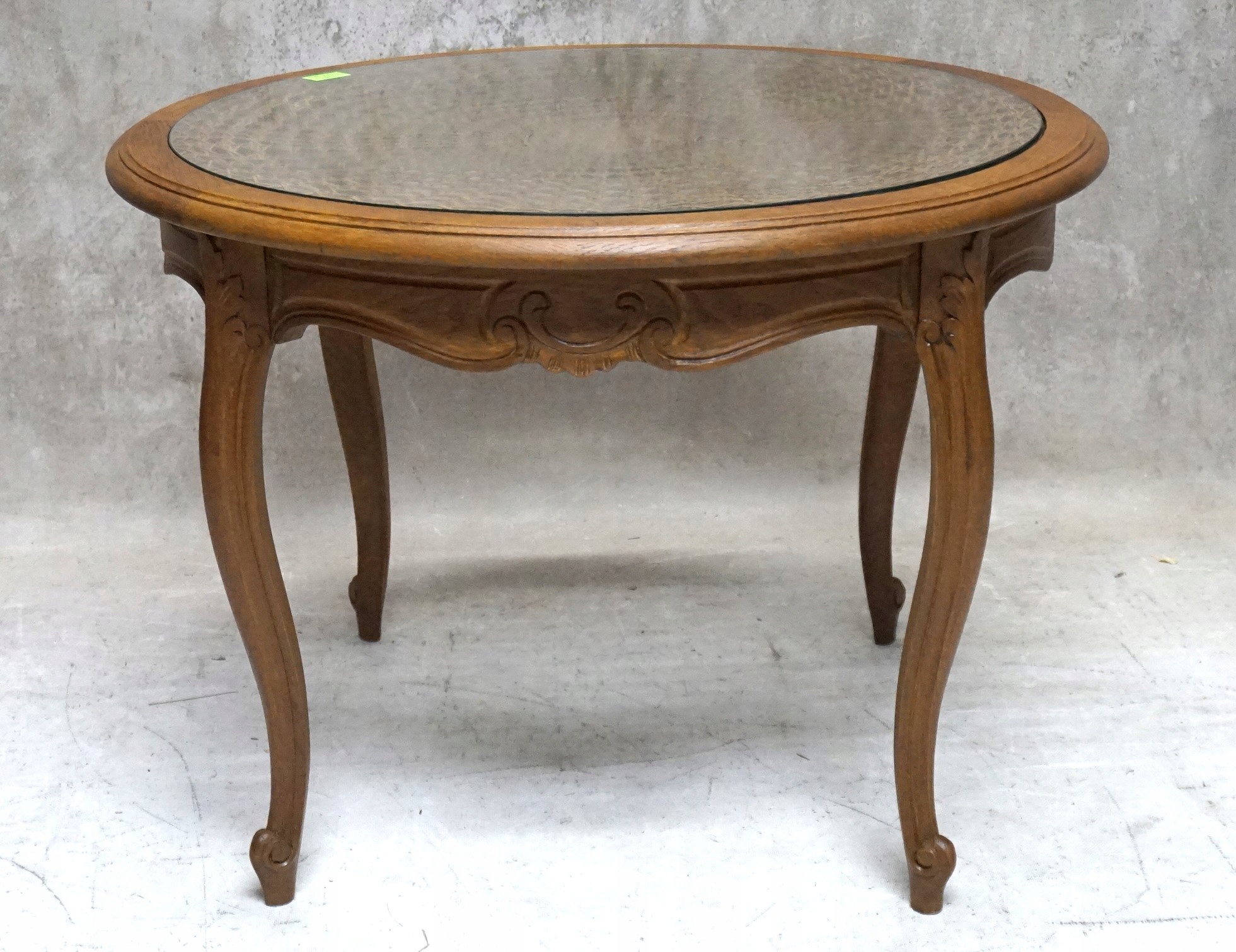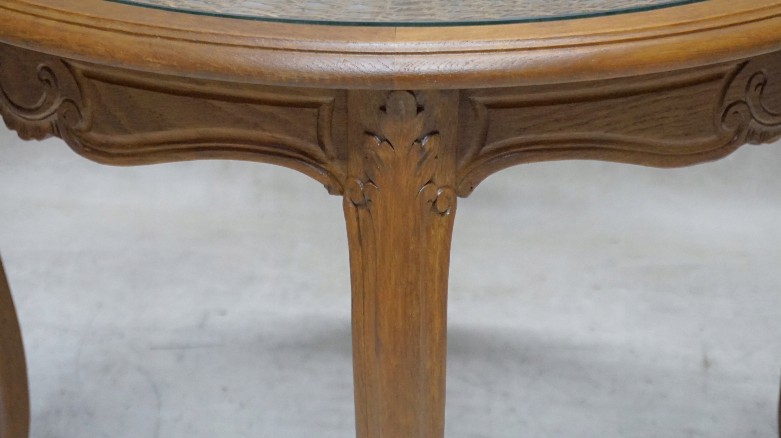 Стільниця з плетеної рафії, з декоративною різьбленою розеткою, скло зверху.