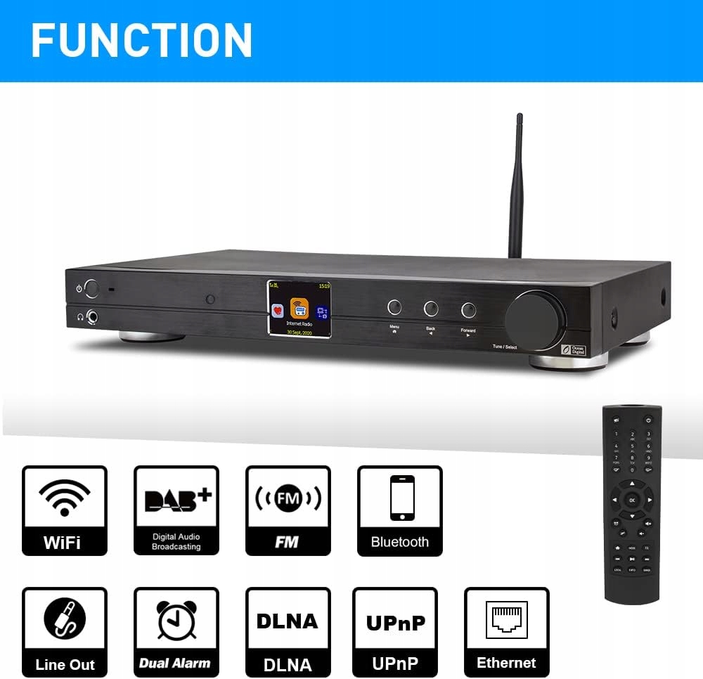 - Спеціальна функція: налаштування еквалайзера; подвійний будильник/таймер сну; кнопка включення/виключення будильника, тюнер інтернет-радіо; DAB/DAB+/FM; Bluetooth / UPnP / DLNA сумісний приймач; d… Показати більше