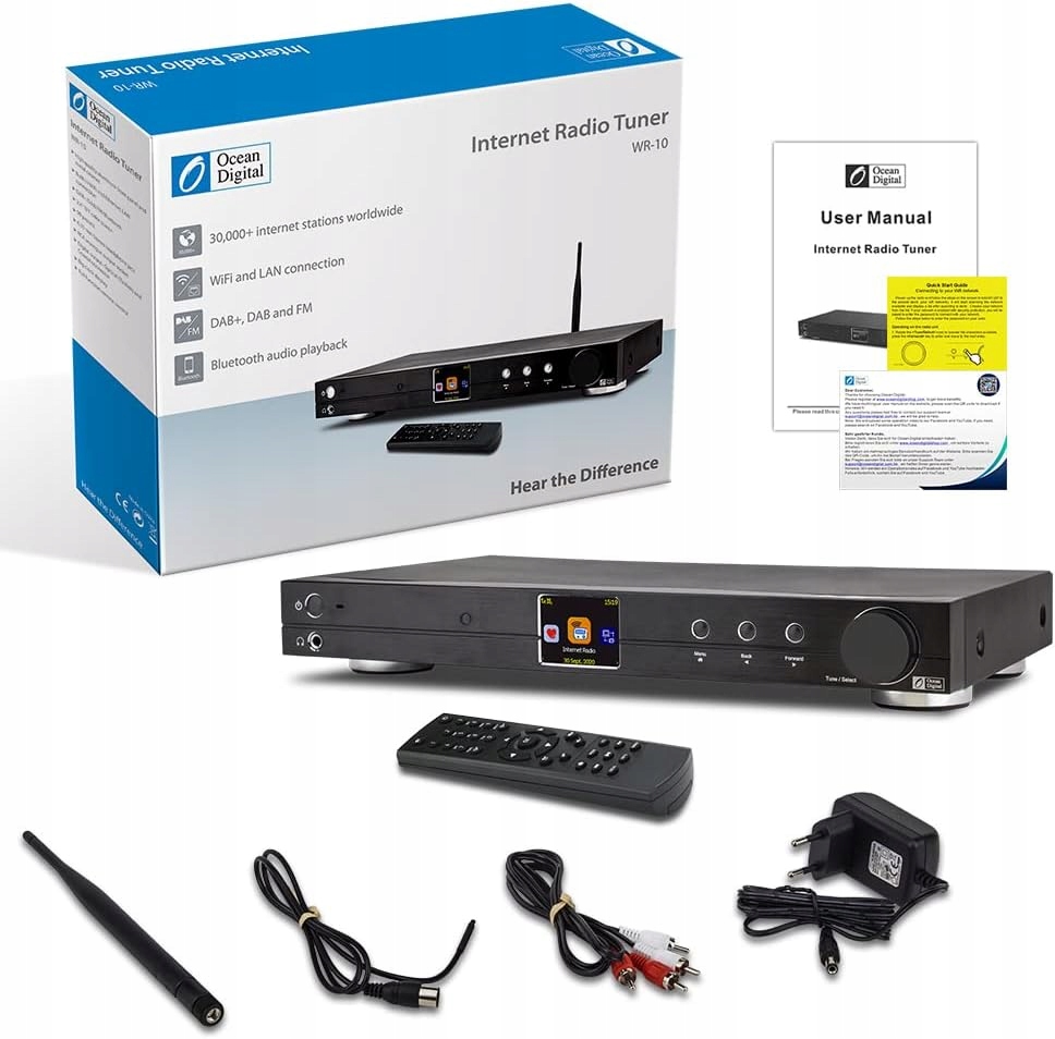 Ocean Digital WR10 DAB+/DAB/FM/Ethernet Bluetooth-тюнер (430 мм) WiFi WR10 DAB+/DAB/FM/Ethernet Bluetooth-приймач 2,4" кольоровий TFT-дисплей із цифровим виходом для системи Hi-Fi - чорний