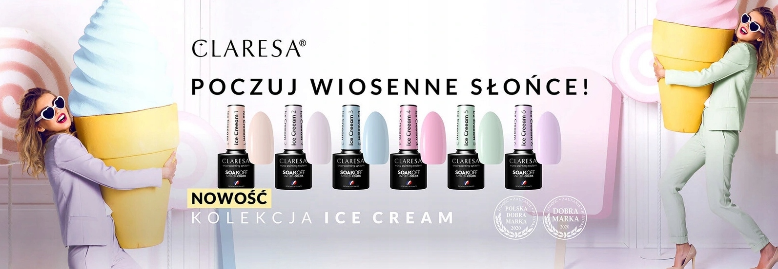 CLARESA ZESTAW LAKIERÓW ICE CREAM LAKIERY HYBRYDOWE LAKIERY DO PAZNOKCI