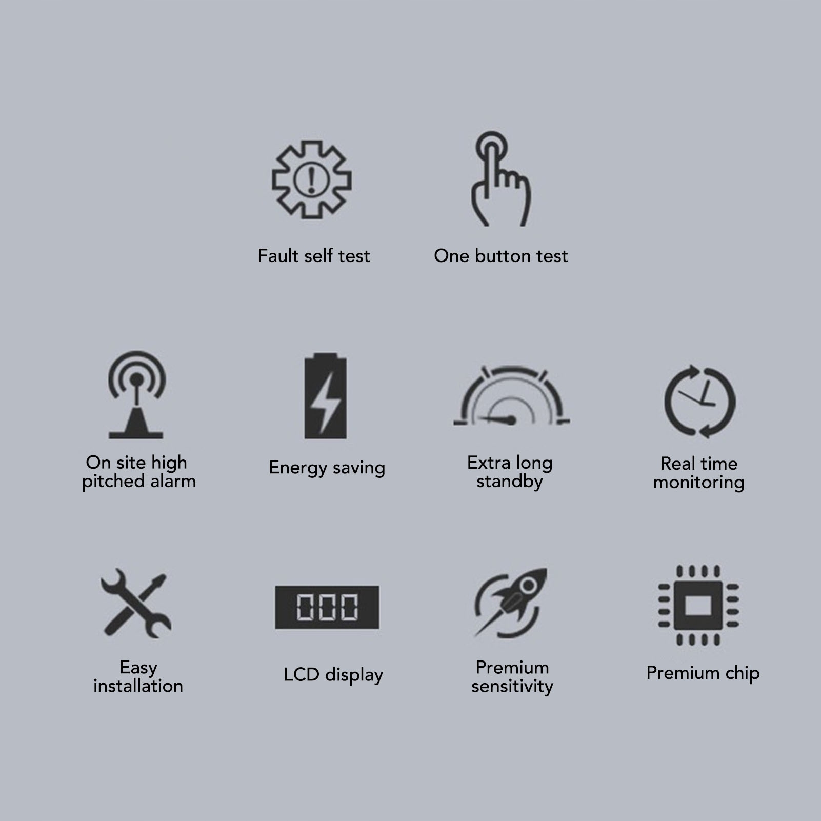 1. Світлу Audible Light: При виявленні небезпечного рівня CO червоний світлодіод буде спалахнути, а режим тривоги випромінюватиме тривогу, що перевищує 70 децибелів, щоб захистити життя та властивість вашої родини від шкоди детектора CO.