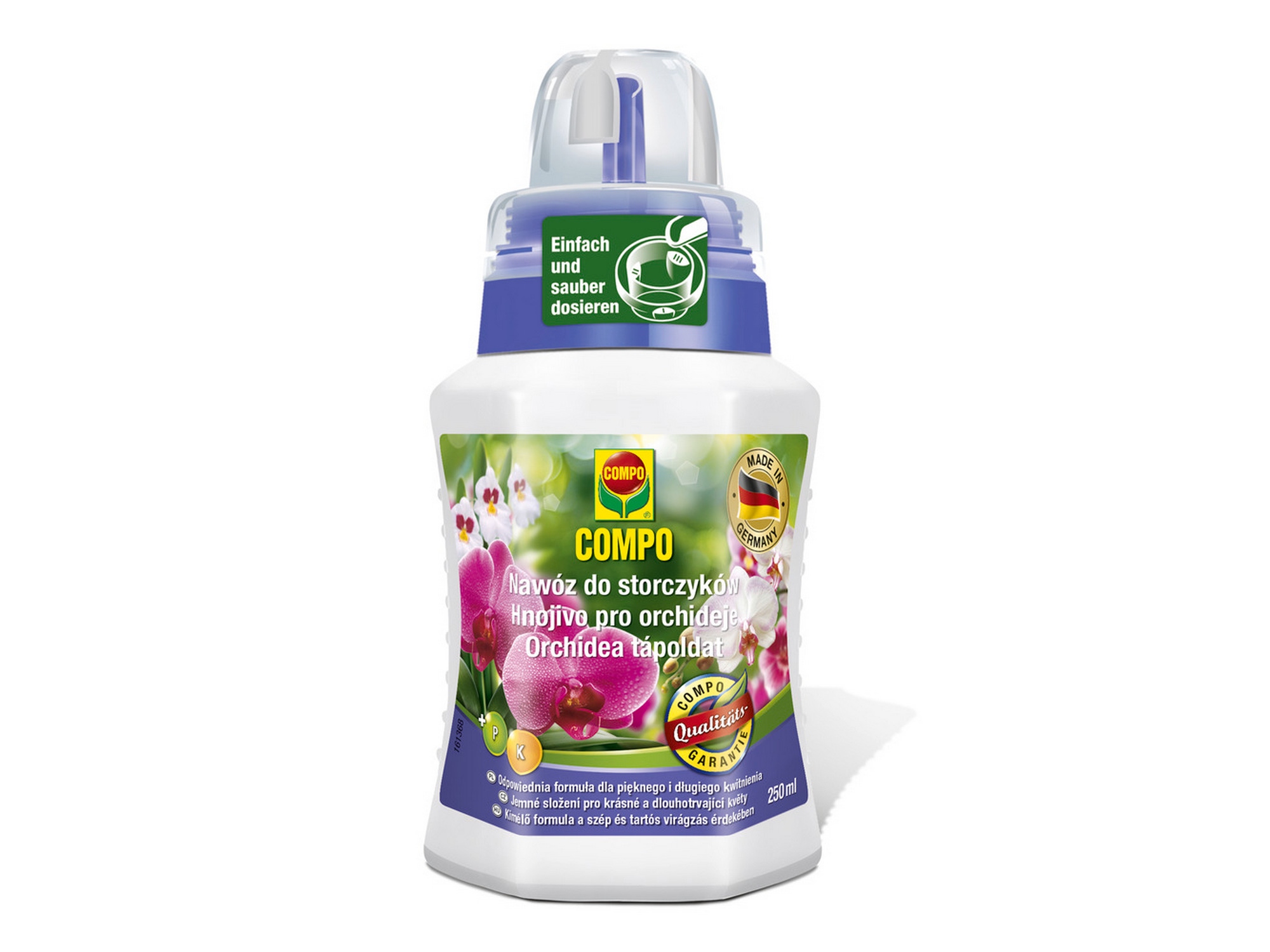 Рідке мінеральне добриво для підживлення всіх орхідей марки КОМПО. Завдяки правильному поєднанню поживних речовин це добриво забезпечує тривале і пишне цвітіння. Крім того, вміст калію запобігає опаданню квіткових бруньок
