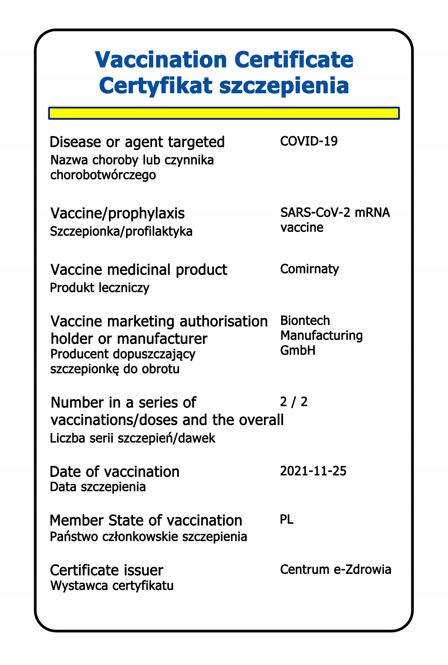 Після придбання та оплати замовлення надішліть нам PDF-файл вашого сертифікату вакцинації, завантажений з Інтернет-облікового запису пацієнта (шаблон навпроти),