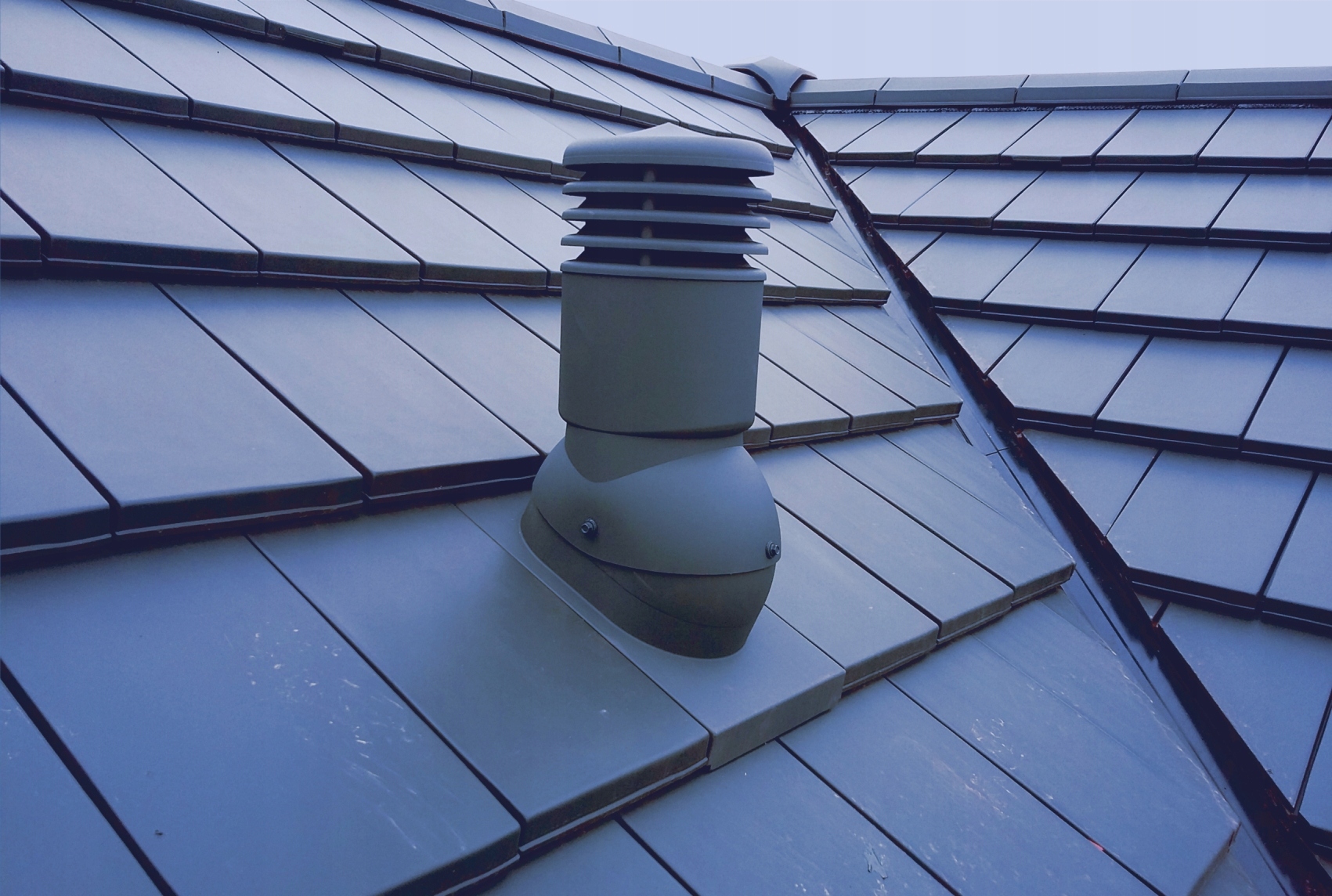 Камін, виготовлений з високоякісного алюмінієвого сплаву, що забезпечує незрівнянно більшу довговічність та функціональність стосовно існуючих продуктів подібних продуктів з кераміки або пластмас на ринку. Камін стійкий до пошкоджень, спричинених як під час транспортування, зберігання та складання. Камін використовує інноваційну систему подвійної конденсації - вихід конденсату поза каміном та на мембрані на даху. Він використовується як вентиляційний елемент для косу дахів, покритих керамічними плитками на трактах, з нахилом від 5˚ до 45˚. Використовується для вентиляції вологого повітря з горища, утиліти, кухні, ванних кімнат, санітарних кімнат та стояків для каналізації.
