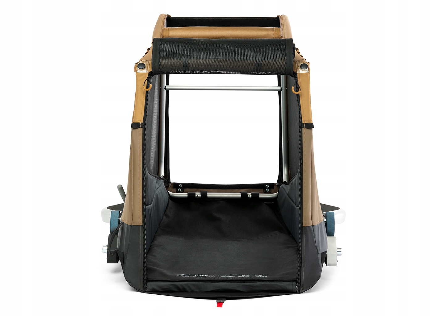 Причіп оснащений твердою підлогою та килимком проти ковзання. Корпус покритий матеріалом, який забезпечує оптимальну вентиляцію завдяки наявності повітряних панелей москітної сітки. Додаткові отвори та кришки, а також їх захист забезпечать комфорт як для цікавих домашніх тварин, так і для більш замкнутих.