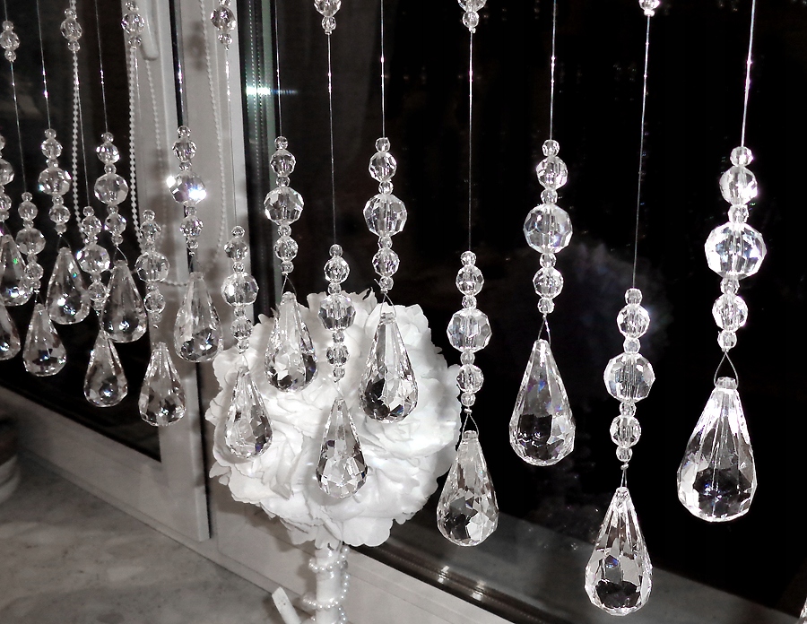 Підвіска виготовлена з акрилових кристалів. Кристали нанизані на прозору нитку. Вони чудово розсіюють світло, додаючи інтер’єру елегантності та стилю.