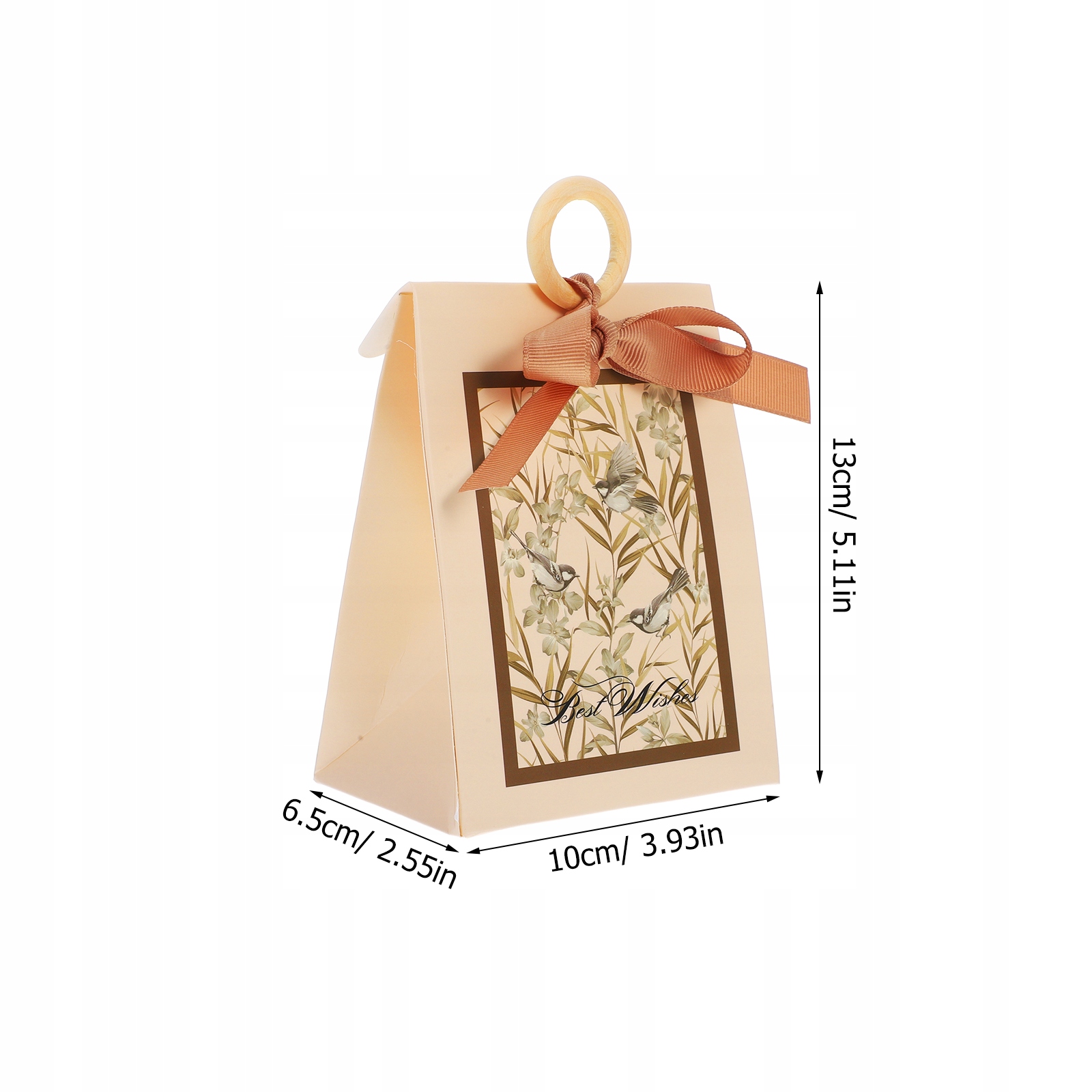 ✅ Добрики: Ця коробка для цукерок виготовлена з паперу та дерева, а його дизайн прикрашений красивою стрічкою та дерев’яним кільцем