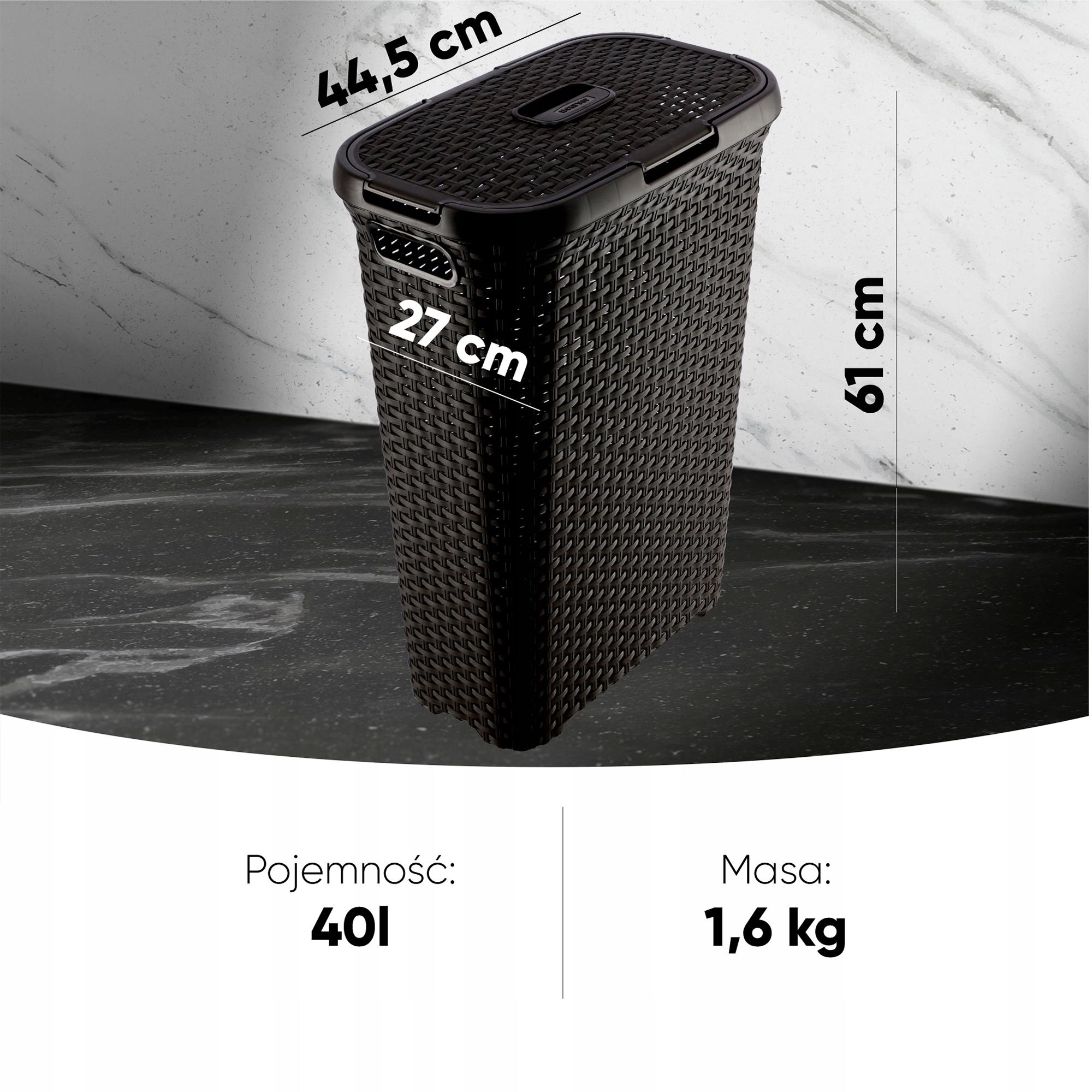 Будьте розумнішими та інвестуйте в практичні рішення! Кришка кошика дуже щільна, тому ви не відчуєте неприємного запаху зсередини. Кошик має отвори, які забезпечують постійний потік повітря всередині, а з іншого боку вони служать ручками для зручного перенесення кошика з його вмістом. Високоякісний матеріал стійкий до подряпин, тому кошик буде прослужить вам роками та довше збереже свій бездоганний стан.