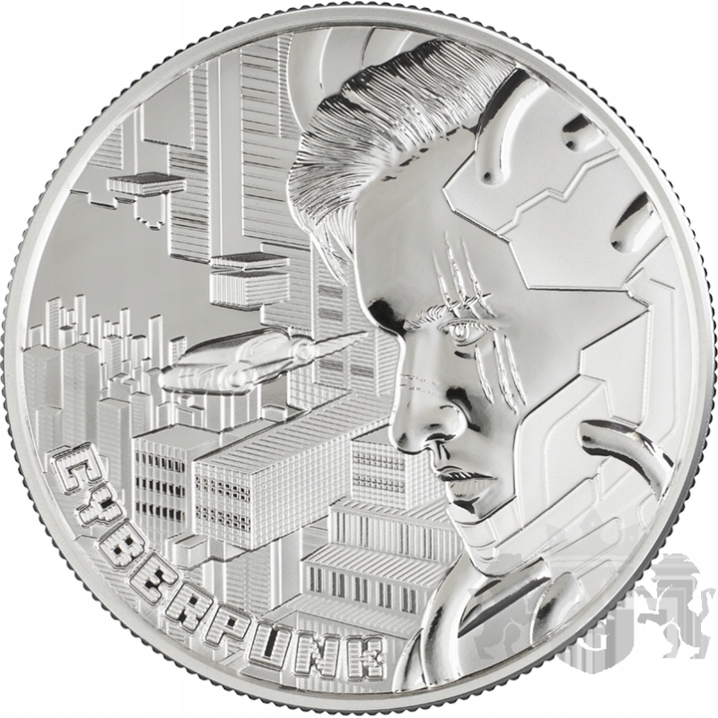 Cyberpunk - The Punk — це перша монета із серії The Punk Universe, викарбувана з 2 тройських унцій (62,2 г) чистого срібла 999 проби. Cyberpunk — це вид наукової фантастики, який представляє світ майбутнього, переповнений технологіями, корпораціями та злочинністю. Його характеристики включають антиутопічне суспільство, неонові міста, кібернетичні вдосконалення та соціальні конфлікти.