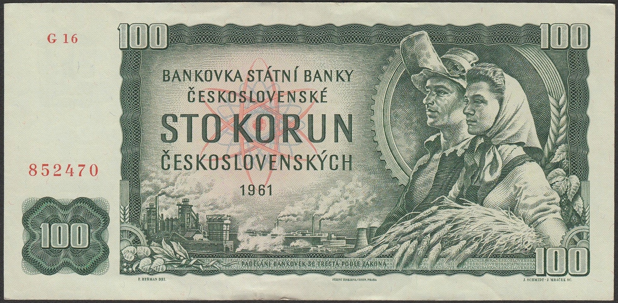 Czechosłowacja 100 koron 1961 - G61 - stan 2