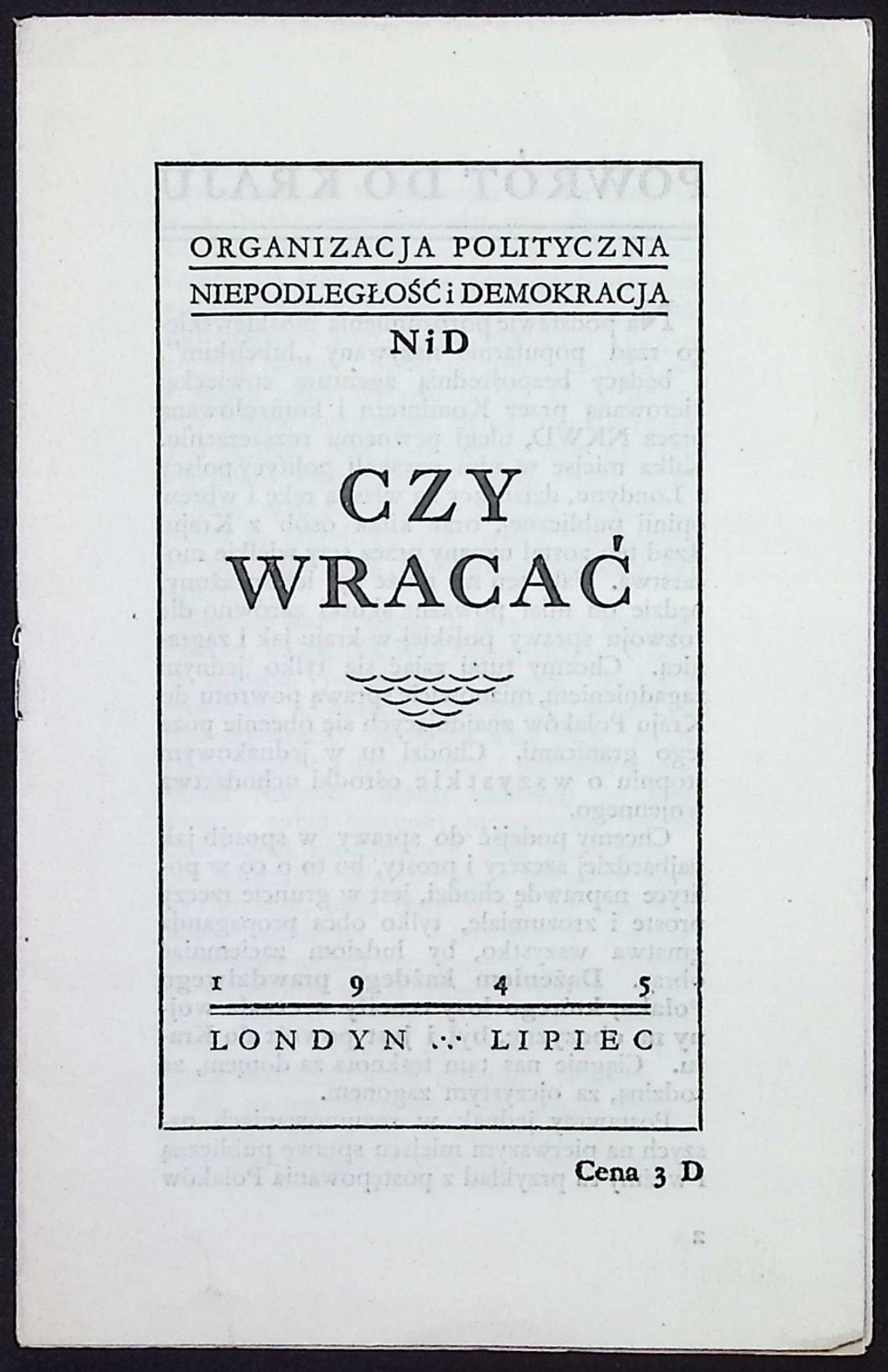 Покупая «Czy wracać (1945 r.)», вы можете быть уверены, что данное изделие из каталога «Политик» вы получите через 5-7 дней после оплаты. Товар будет доставлен из Европы, проверен на целостность, иметь европейское качество.