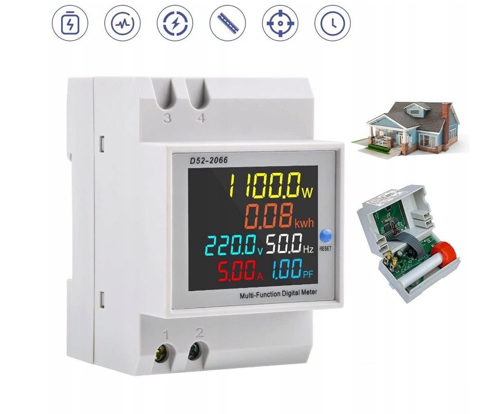 D52-2066 метр-це компактний пристрій для монтажу на DIN-рейку, що дозволяє одночасному вимірювати шість ключових параметрів: напруга, електроенергія, активна потужність, споживання енергії, частота та коефіцієнт потужності. Завдяки вбудованому трансформатору струму (КТ), установка швидка і проста. Кольоровий РК -дисплей забезпечує чудову читабельність даних, і пристрій буде працювати в розподільних пристроях, PV -установках та інших системах, що потребують моніторингу змінного струму