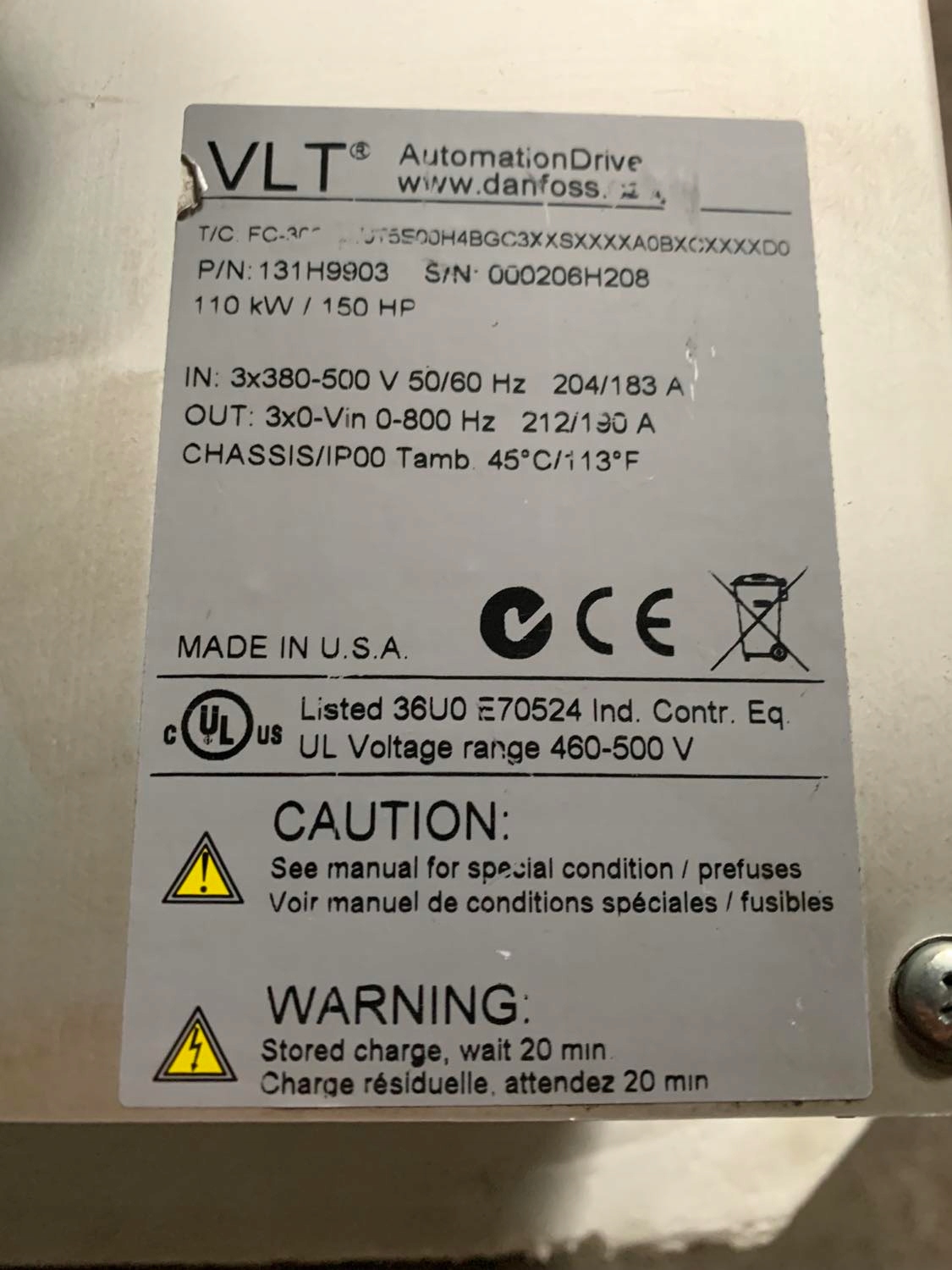 Danfoss VLT FC-302 131H9903 110KW 212A FC-302P110T5E00H4BGC3 XXSXXXA0BXCXXX