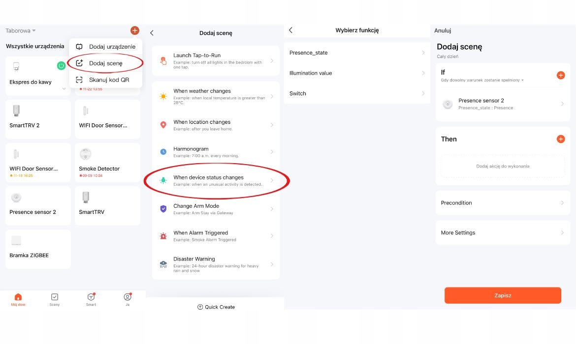 Датчик дозволяє створювати інтелектуальні сцени, які дозволяють автоматизувати роботу різних пристроїв вдома. Після виявлення руху ви можете, наприклад, автоматично увімкнути освітлення, почати опалення, кондиціонер або інше розумне обладнання. Завдяки інтеграції з додатками Tuya та Smart Life, можна адаптувати акції до індивідуальних потреб підвищення комфорту та енергоефективності.