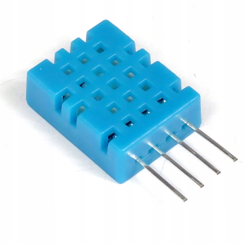 Датчик DHT11 дозволяє нам вимірювати температуру та вологість. Його можна живити напругою від 3,3 В до 5 В. Характеризується невисокою ціною, великою кількістю путівників і бібліотек для використання. Датчик не найшвидший, і наступні показники температури отримуються в середньому кожні 6 секунд. Хорошою практикою є розміщення підтягуючого резистора 10 кОм між лініями DAT і VCC. Для роботи датчика потрібно під’єднати контакти GND – земля, VCC – джерело живлення плюс і Data – лінія даних.