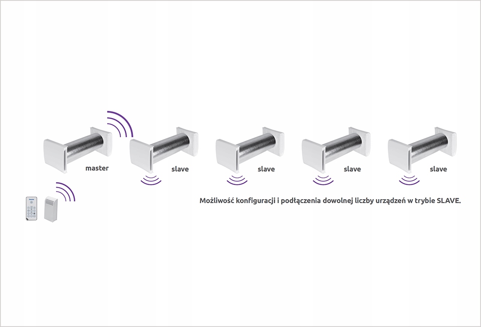 AHR160 може підключати кілька пристроїв, встановлених в одній або кількох кімнатах з можливістю об’єднати їх у пару через бездротовий зв’язок. Без необхідності клопіткого підключення пристроїв за допомогою шнура живлення. Випаровування можливе в різних режимах, наприклад, обидва блоки тільки подають повітря, або тільки витяжне повітря, а також поперемінно - один блок подає повітря, а інший виводить.