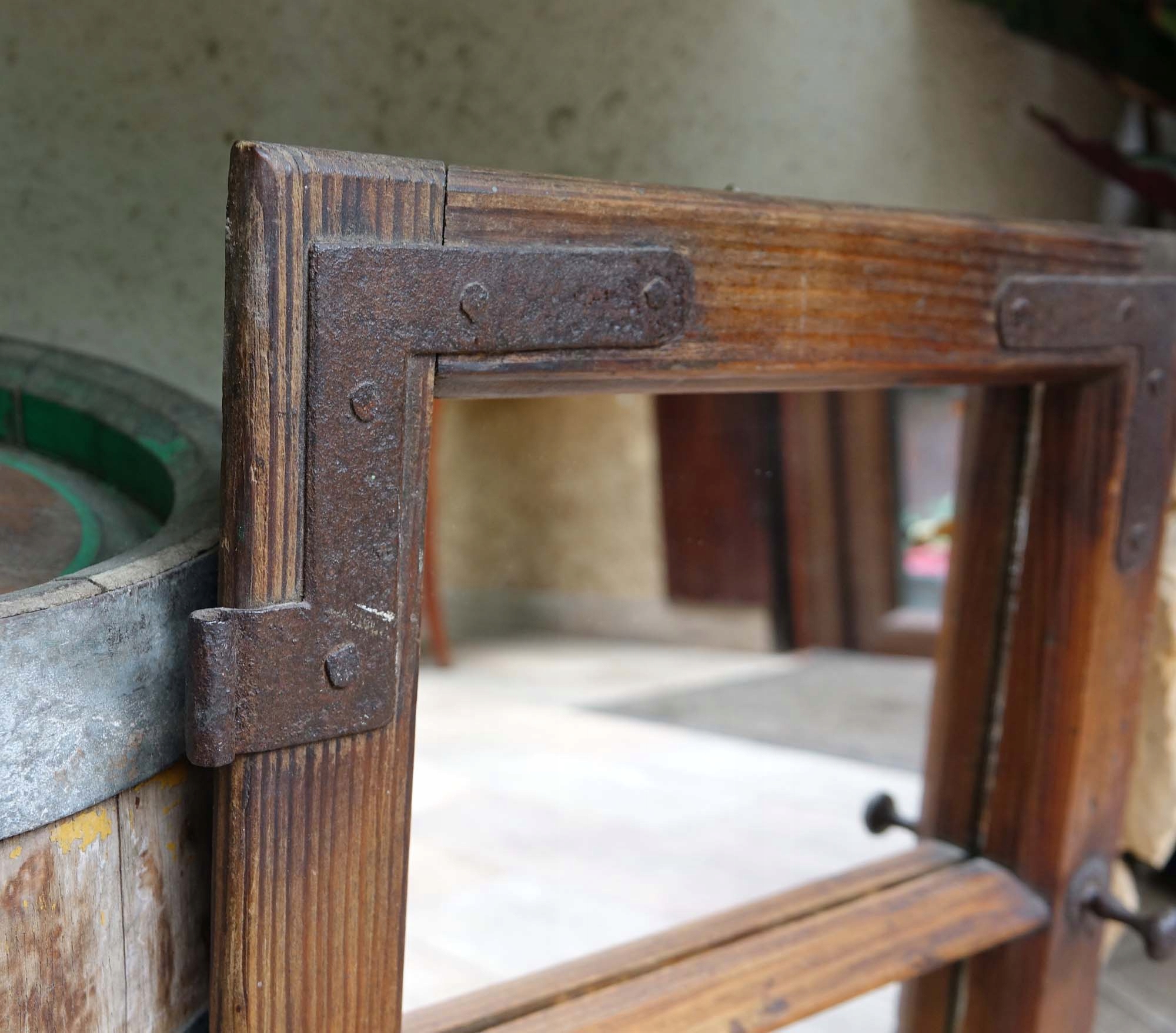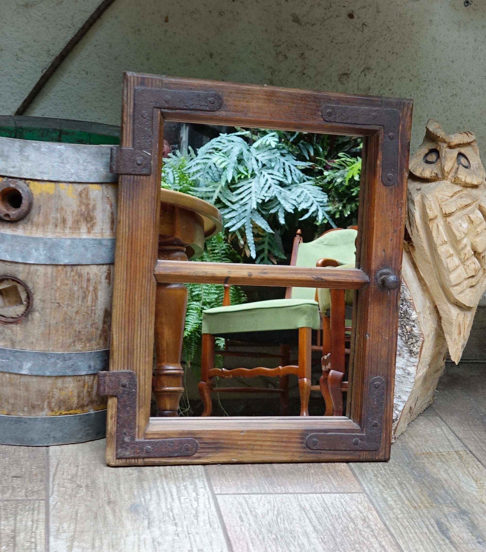 рама, виготовлена зі старого дерев’яного вікна, з оригінальною металевою фурнітом та старою ручкою дверей