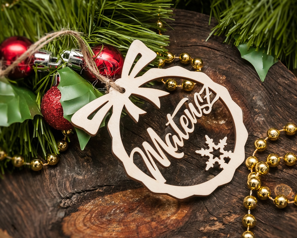 Красива дерев'яна ажурна прикраса для ялинки з іменем + шнурок для підвішування БЕЗКОШТОВНО!
