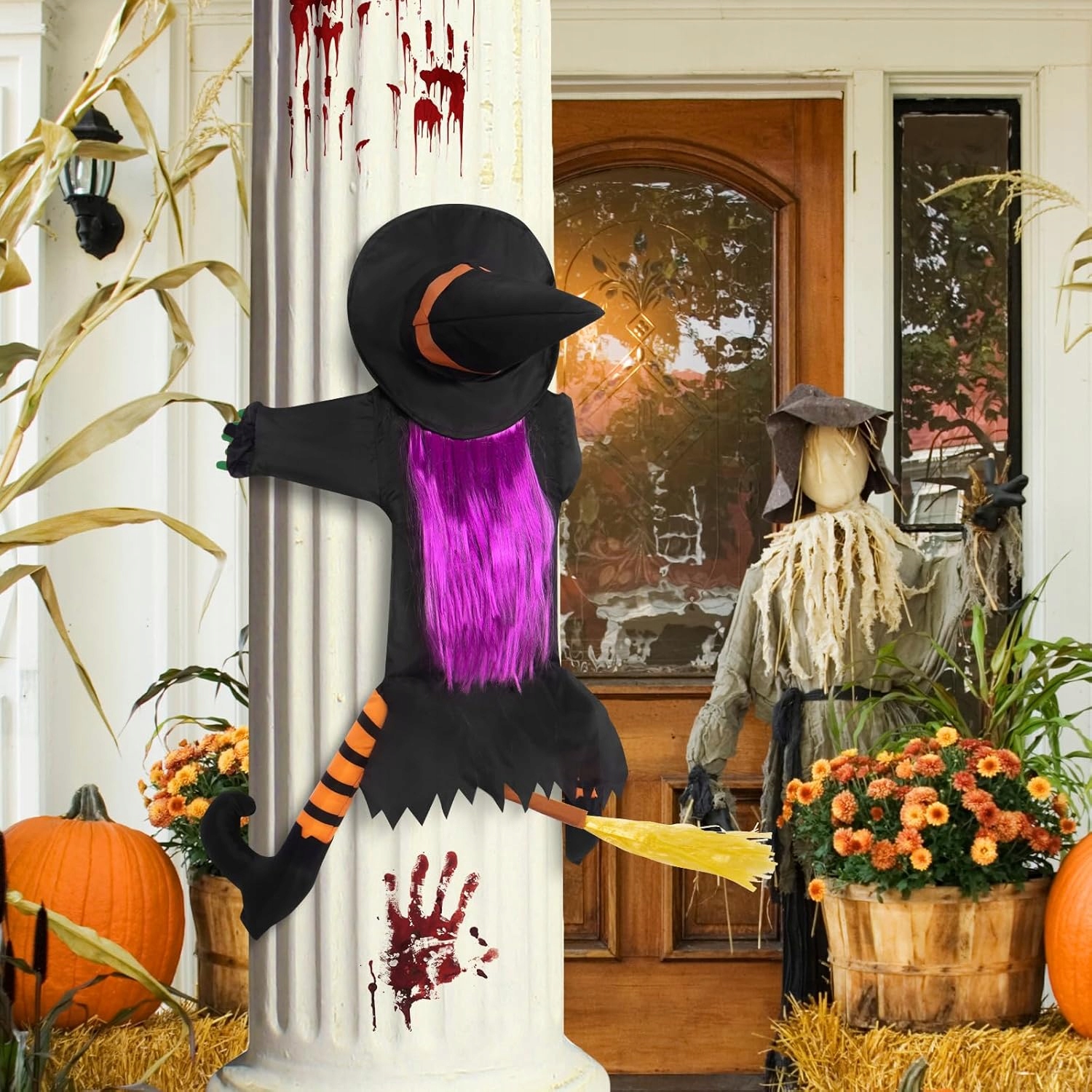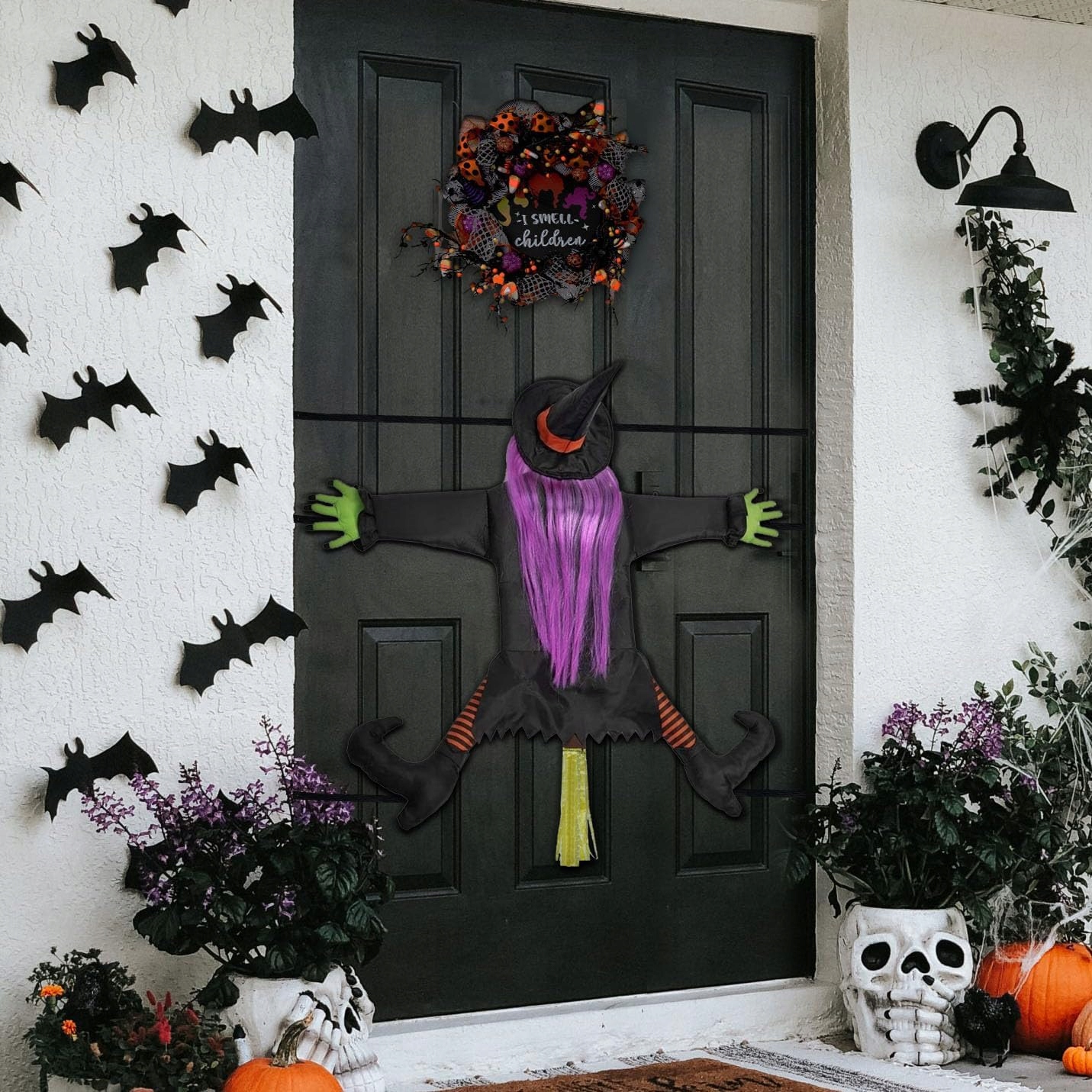 👻👻Яскраві та чарівні висячі розбиваючі відьми - з яскраво-фіолетовим волоссям, зеленими руками та кольоровими панчохами , реалістична смішна відьма буде в центрі уваги всіх перехожих, змусить вашу родину, друзів і сусідів відчути моторошний сюрприз.