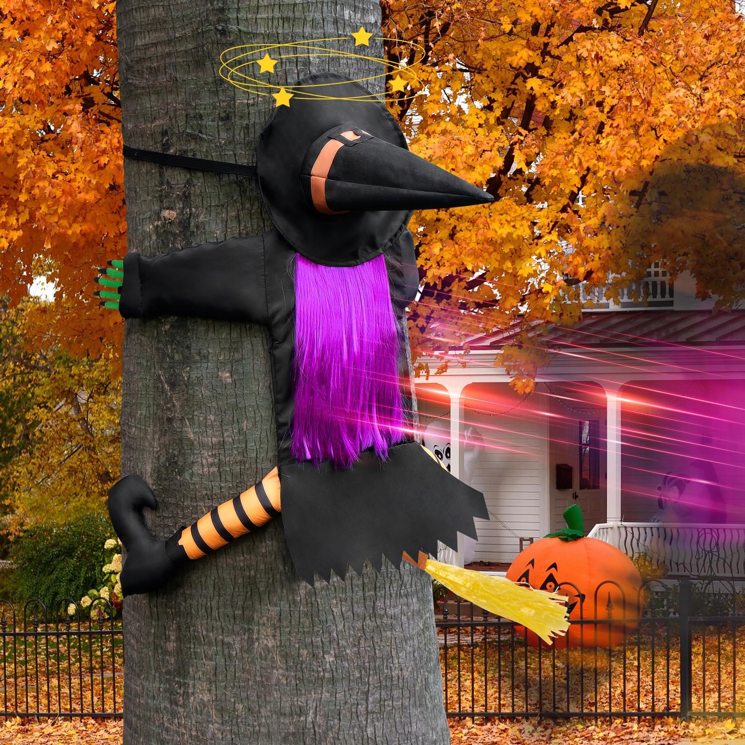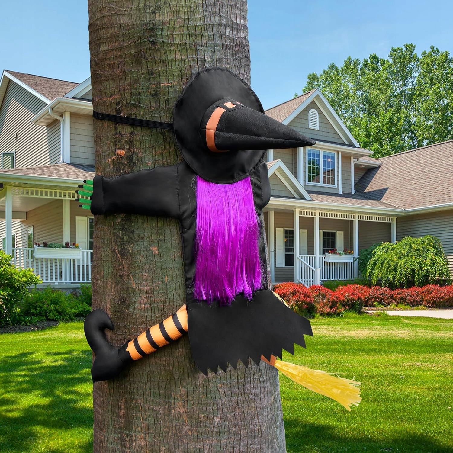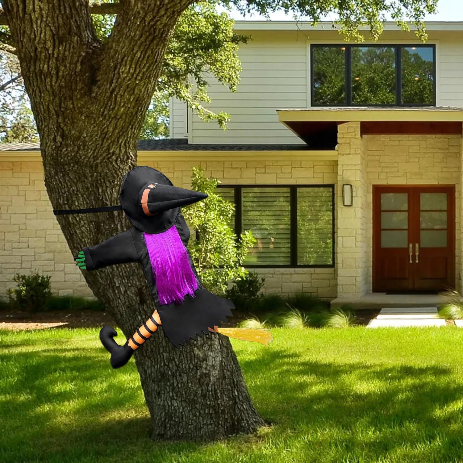 🪄🪄ЖИВИЙ І ВЕСЕЛИЙ ДИЗАЙН:з яскраво-фіолетовим волоссям, зеленими руками та різнокольоровими панчохами цей реквізит виглядає яскраво. Падаюча мітла та розкриті руки й ноги показують, що вона врізалася в дерево, тому вся сцена виглядає смішною.