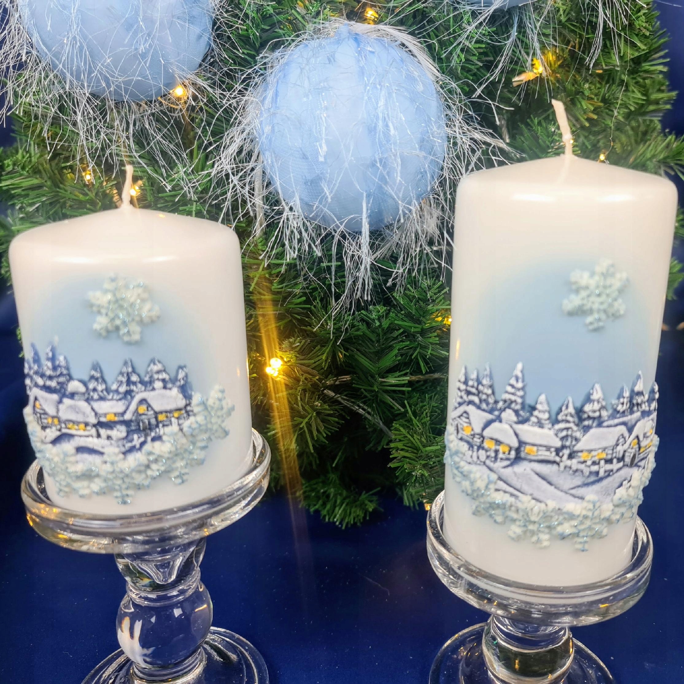 ДЕКОРАТИВНА СВІЧКА ЗИМА ВІКНА ЛАК білий/синій 15СМ