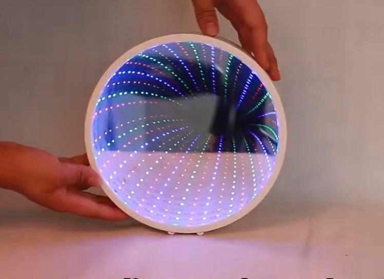 Дзеркало має серію менших дзеркал і світлодіодів RGB, які разом створюють ілюзію нескінченного тунелю світла! Крім того, світлодіоди виробляють гіпнотичний ефект, виробляють снодійний ефект.