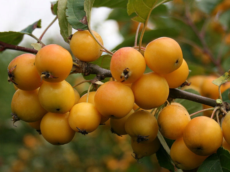 Це швидкозростаюче яблучне дерево з вільною коронкою, що росте до 5 м заввишки і 3,5 м. Квіти цього дерева в пончиках блідо -рожеві і після відкриття світло -рожевого, самотнього, цвіту в травні. Це яблучне дерево виглядає найкрасивіше восени, тому що потім покрито численними жовтими плодами, залишаючись до зими на дереві. Ці фрукти ідеально підходять для консервів.