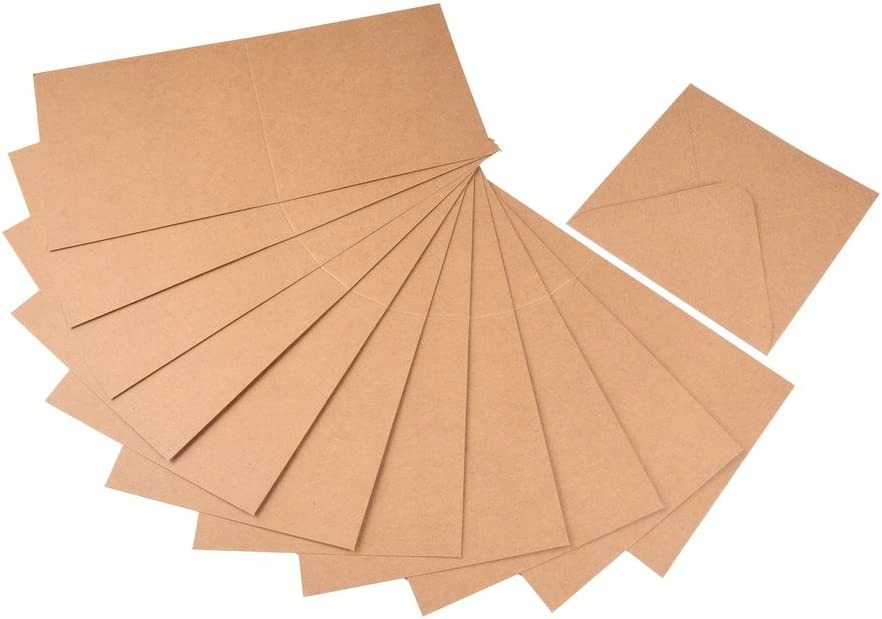 - Виготовлено з високоякісного натурального картону/крафт-паперу: листівки 320 г/м² та конверти 150 г/м².