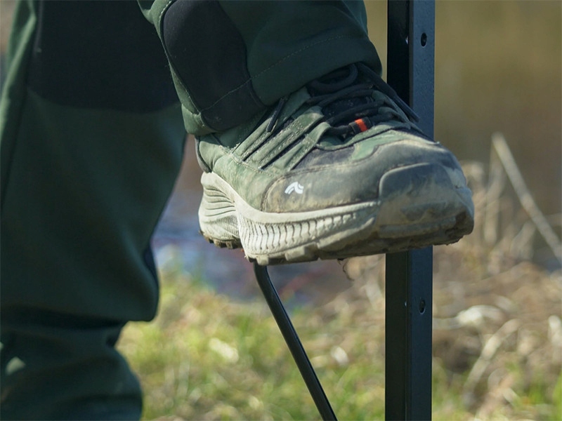 виготовлений із твердої сталі, стійкої до зовнішніх факторів та механічних пошкоджень. Нижня частина завершена різкою шпилькою для легшого заїзду в більш важку землю. Для подальшого полегшення складання підтримка оснащена зварною пішохідною частиною, що дозволяє її загнати в землю.