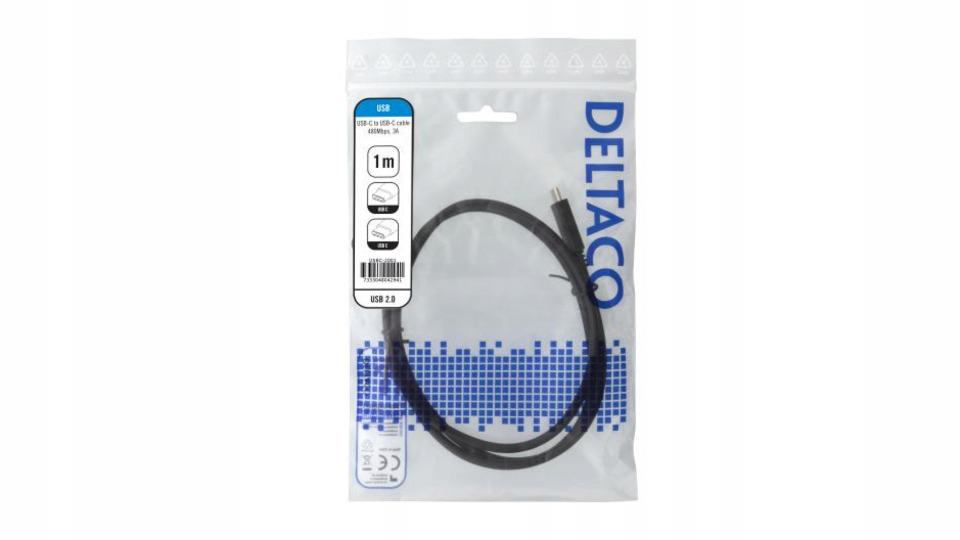 DELTAC USB 2.0 USB-C Cable, USB-C зарядний кабель, 3A, 1м, чорний
