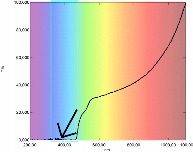 "У діапазоні синього світла, що охоплює довжини хвиль від 400 до 485 нанометрів, пропускна здатність перевіреної лампи становить максимум трохи менше 14,57%. Цей результат чітко вказує на значне обмеження здатності лампи випромінювати світло на цих конкретних довжини хвилі."