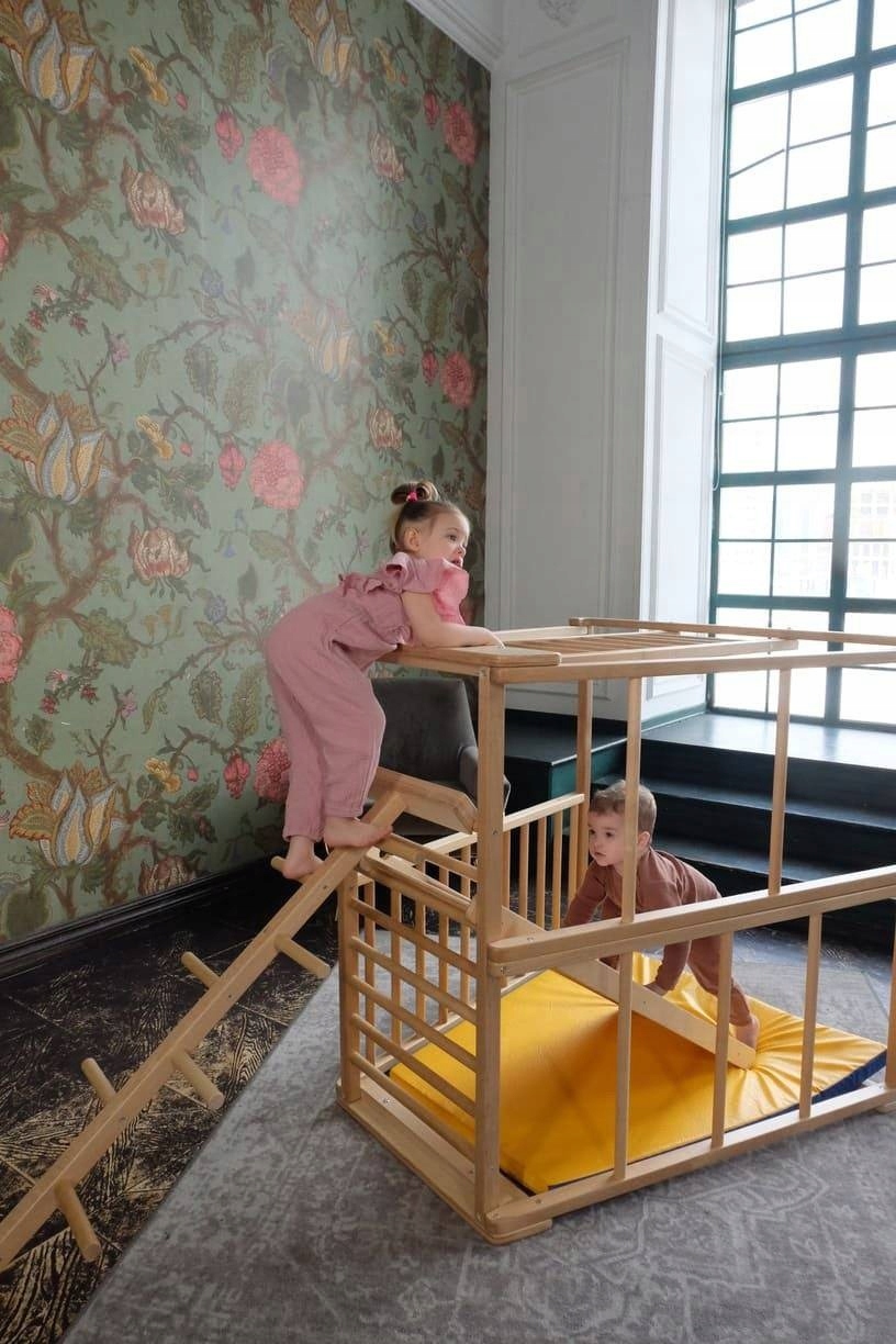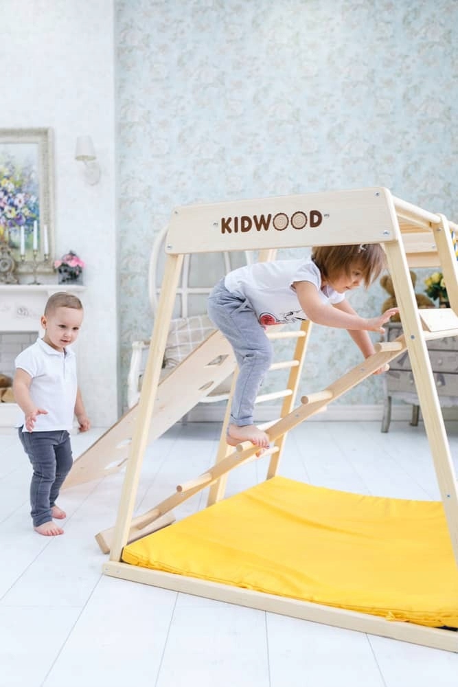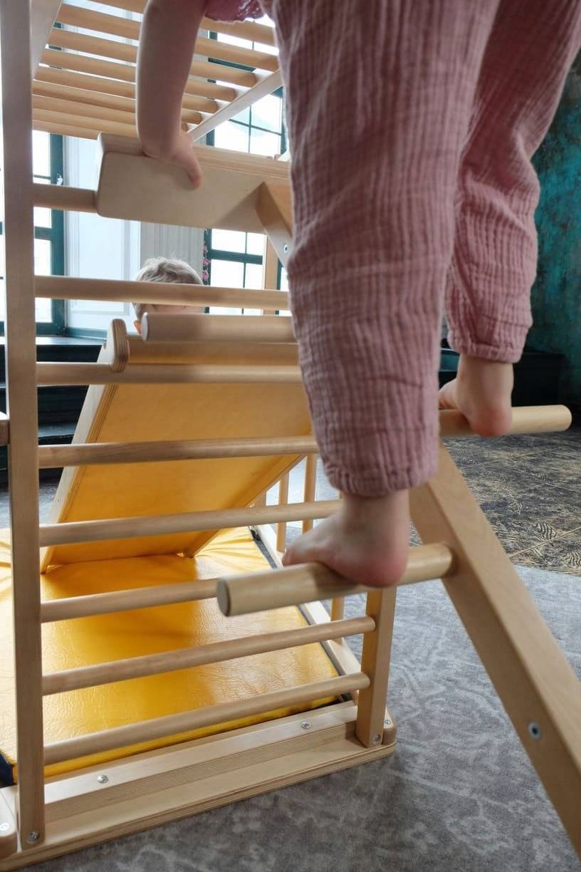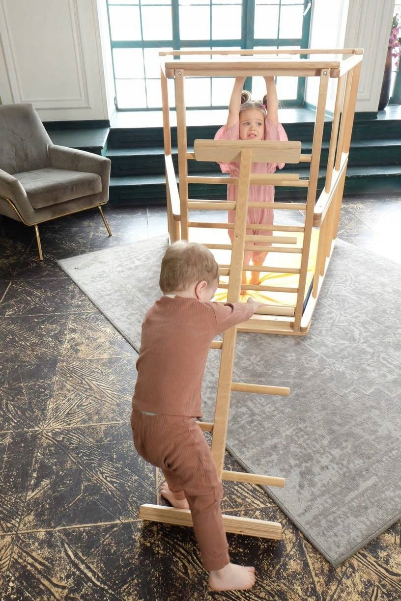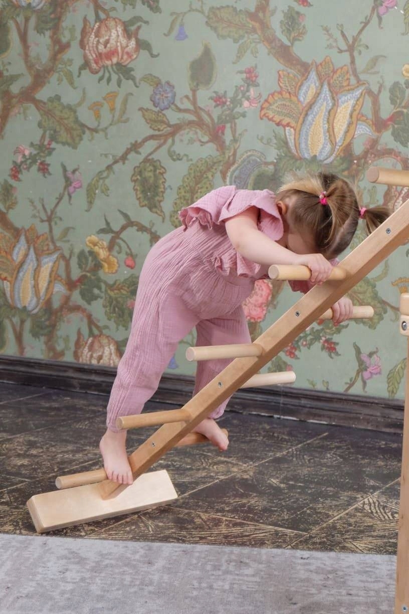 Асиметрична драбина - справжній скарб, що підтримує розвиток дітей від 1,5 років. Рівні цієї драбини розташовані як на шаховій дошці, забезпечуючи унікальні враження під час сходження. Цей дизайн не тільки допомагає розвивати рухові навички, спритність та рухливість малюків, але й підтримує координацію через перехресний рух, позитивно впливаючи на обидва півкулі мозку - що надзвичайно важливо на ранній стадії розвитку дитини.