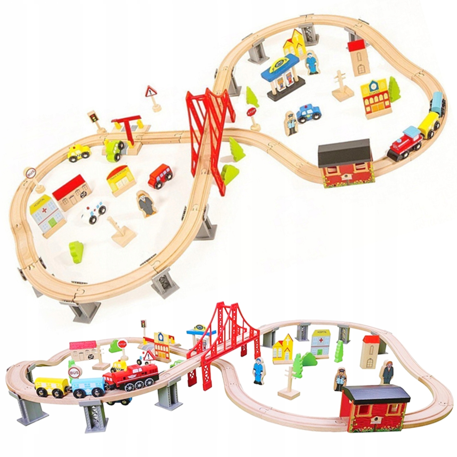 Дерев’яна іграшка для поїздів для дитини 70 елементів мосту + тунель 3+