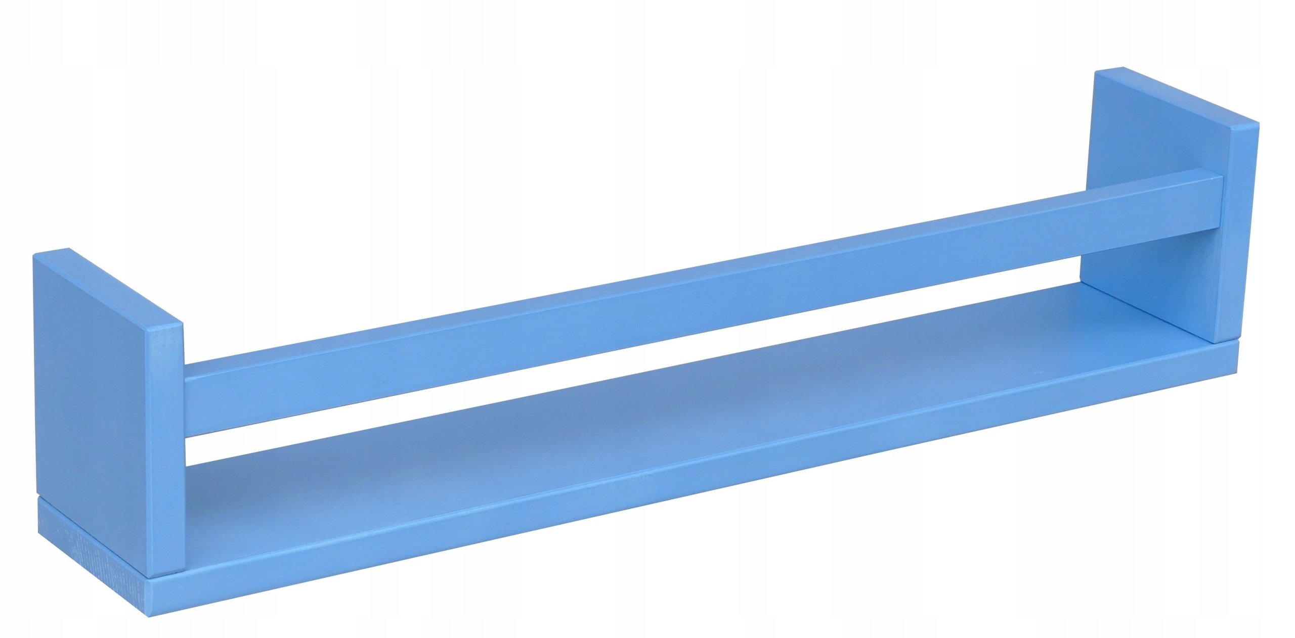 Навісна дерев'яна полиця з обмежувачем, пофарбована в синій колір.