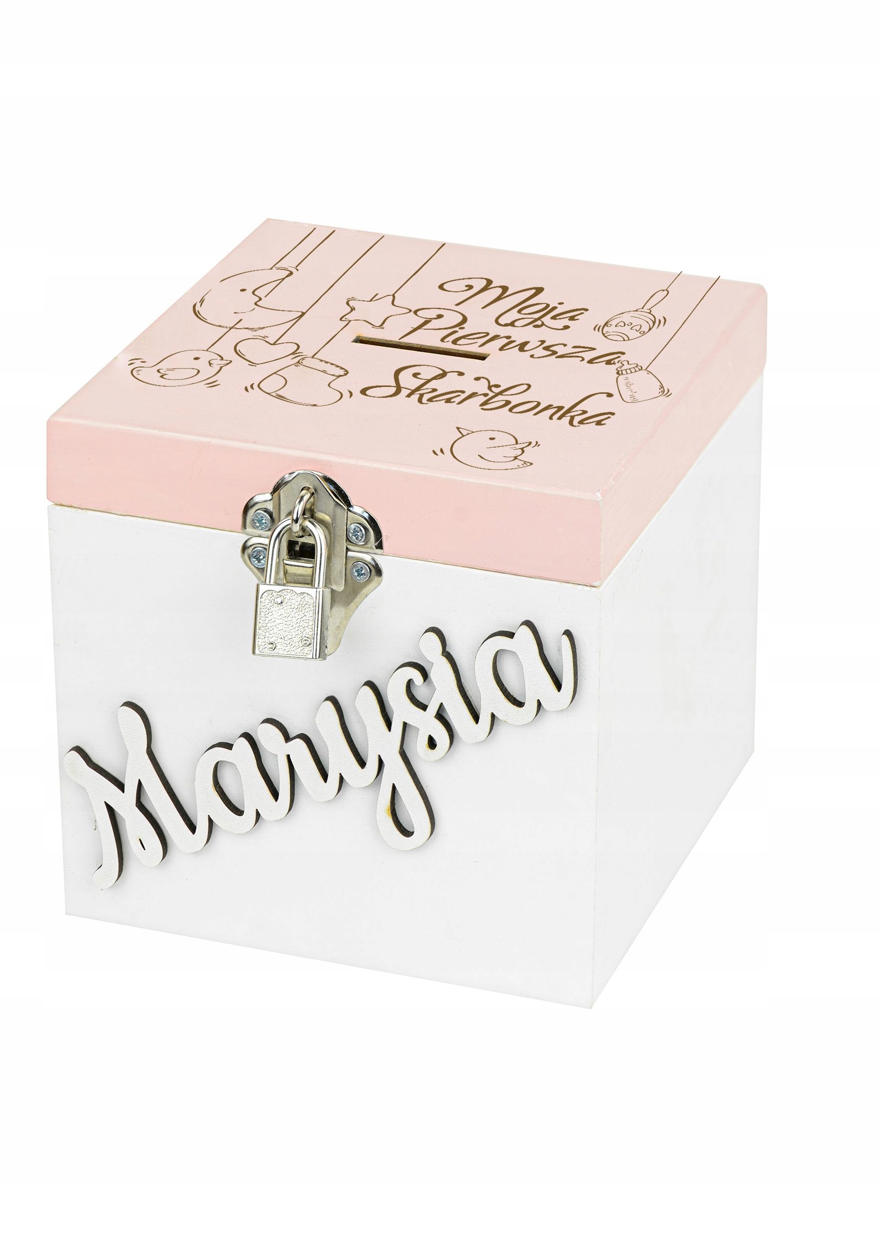 Представляємо дерев'яну скарбничку білого кольору з декоративним замком. Наша продукція стане першою скарбничкою для вашої дитини і дозволить накопичити свої заощадження. Скарбничка також чудова, якщо ми хочемо заощадити великі суми грошей на такі події, як весілля - наше власне чи наших близьких, або екзотичні свята. Оригінальний дизайн коробки впишеться практично в будь-який інтер'єр.