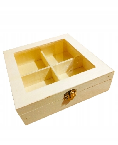 ДЕРЕВ'ЯНА Скринька ДЛЯ ЧАЮ І ПРИКРАШ ЗІ СКЛОМ 16Х16Х5 СМ скло