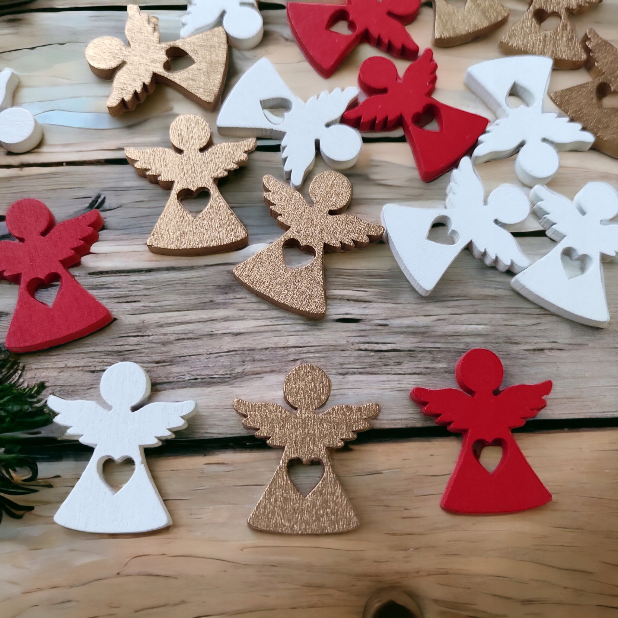 Дерев'яна витинанка АНГЕЛ сердечко 3 кольори декор 24 шт. деревина