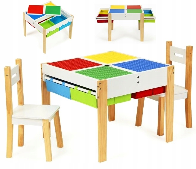 Завдяки можливості повернути стільниці, стіл може бути ідеально пристосований до гри, якщо одна дитина хоче намалювати, а іншу, щоб влаштувати блоки, просто повернути одну з елементів контртопії. які будуть створені художніми творами маленьких художників, вірою з блоків та багатьох інших творчих речей. Після гри всі аксесуари можуть бути приховані під стільницею, завдяки якому вони завжди будуть під рукою, готові до використання. У вашому розпорядженні є 4 місткі перегородки, які розмістить блоки, іграшки, малювання аксесуарів і навіть книги.