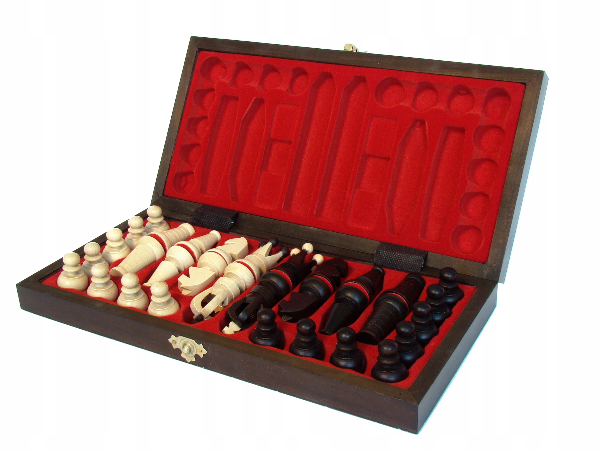 Усередині касети шахові фігури розташовані в спеціально сформованій вставці, яка надає їм елегантності та запобігає переміщенню фігур.