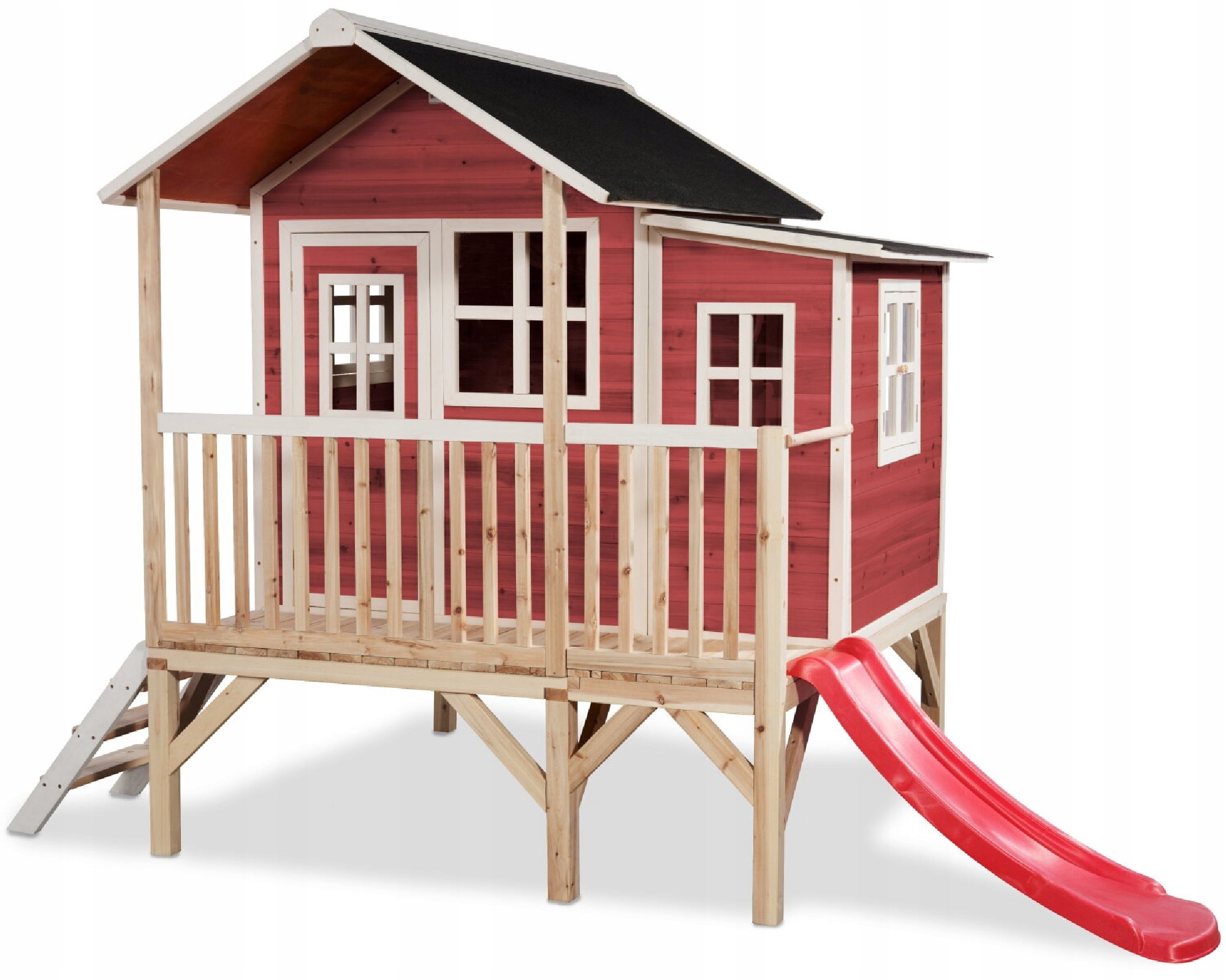 Створено голландською маркою Вихід з іграшок , який виробляє іграшки та високоякісне обладнання на відкритому повітрі. Пропозиція включає, серед інших батутів, басейнів, дерев’яних ігрових майданчиків та Go -kart. Стоїть на ногах і має сходи, додатки і червоний слайд . Крім того, будинок оснащений терасою з перил , що збільшує його функціональність. Попередньо зібрані елементи забезпечують швидку установку . Його елегантний скандинавський дизайн, безумовно, буде добре виглядати добре в саду!