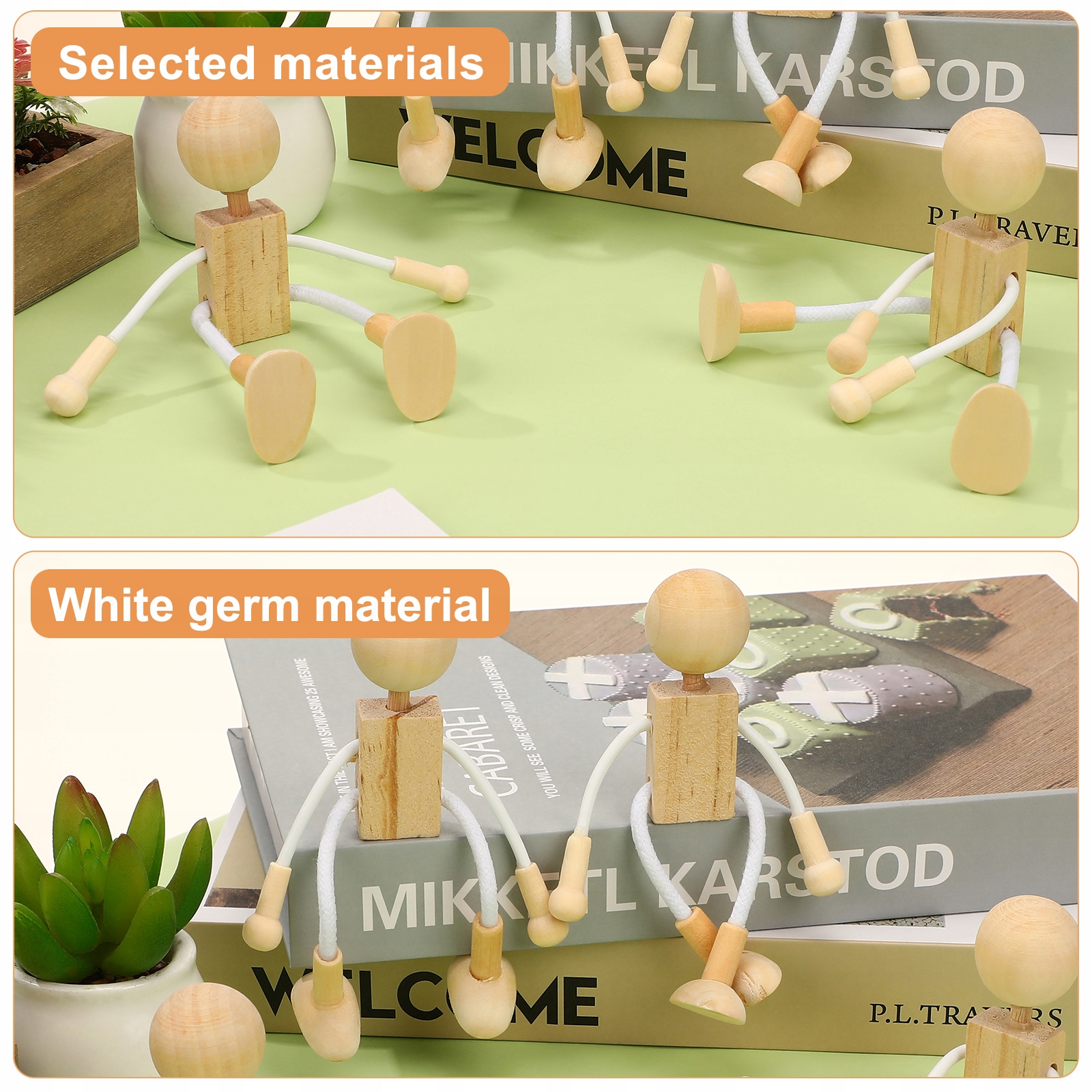 Це набір незакінчених ляльок своїми руками, виготовлених із матеріалів найвищої якості, дрібно відшліфованих, гладких і готових до обробки. Ви можете намалювати риси обличчя, одяг та аксесуари на цих дерев'яних ляльках відповідно до вашої уяви або просто змінити їх позу для прикраси.