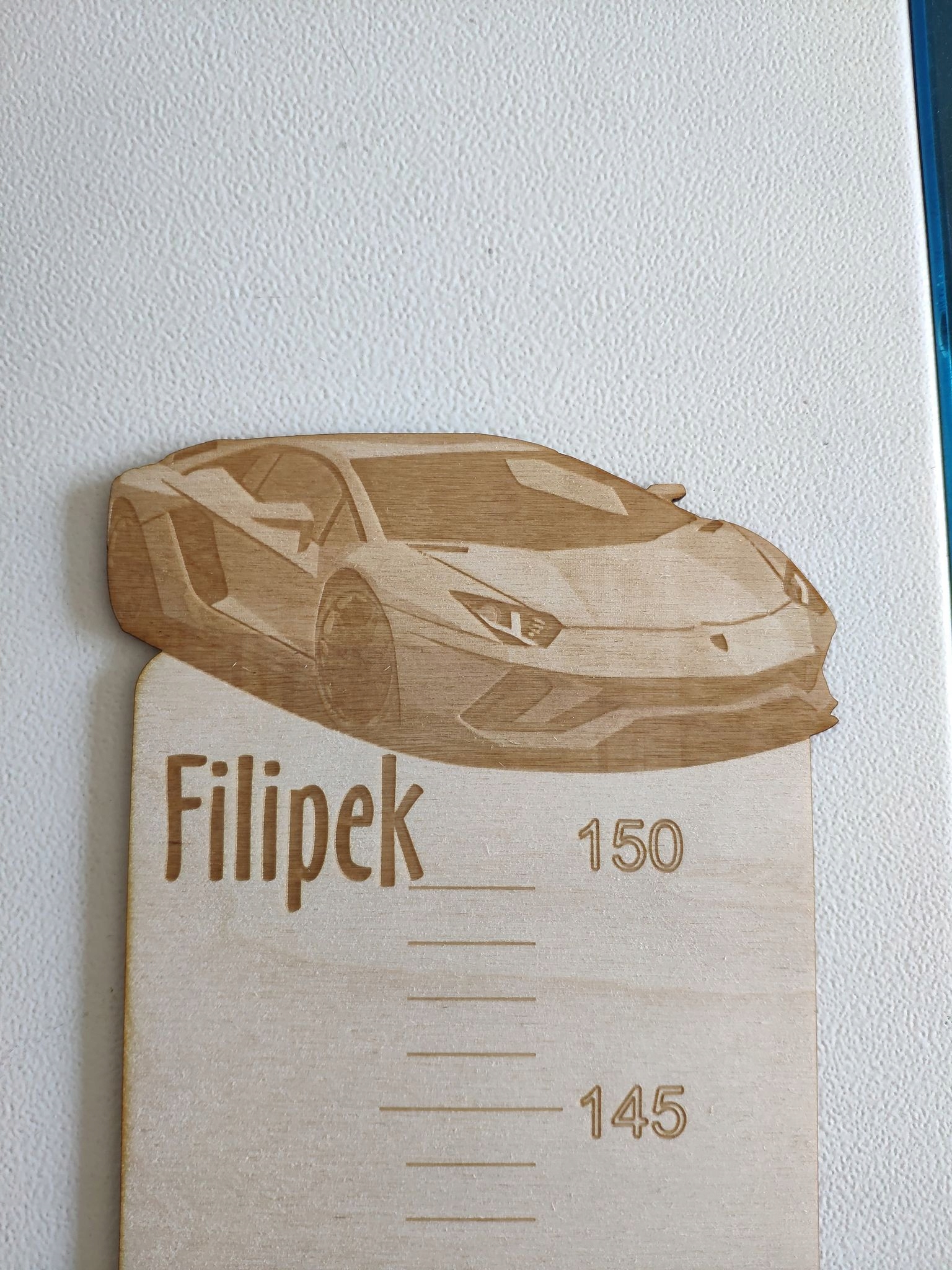 Лазерна вирізка та гравірування мір. Він складається з двох елементів. Елементи з’єднуються як пазл, що робить збірку швидкою та інтуїтивно зрозумілою. Вимірювальна стрічка жорстка, міцна і в той же час відносно легка і елегантна. Проста установка за допомогою скотча або двостороннього поролону.
