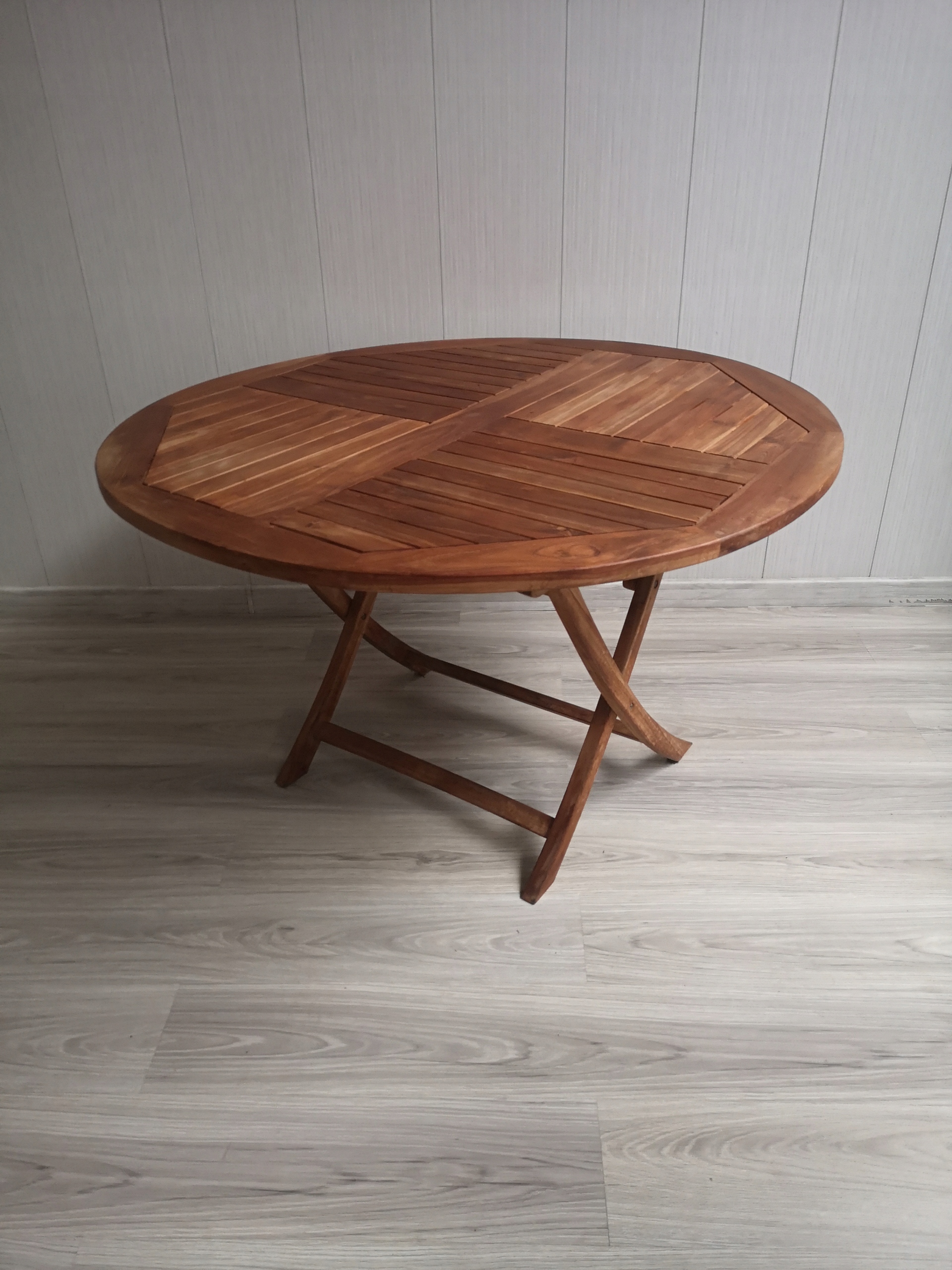 Таблиця, виготовлена з тику, я оцінюю умову для дуже хорошого мінусу без пошкоджень або тріщин, але, коли він лежить плоскою, ви можете побачити, що стільниця, охоплена