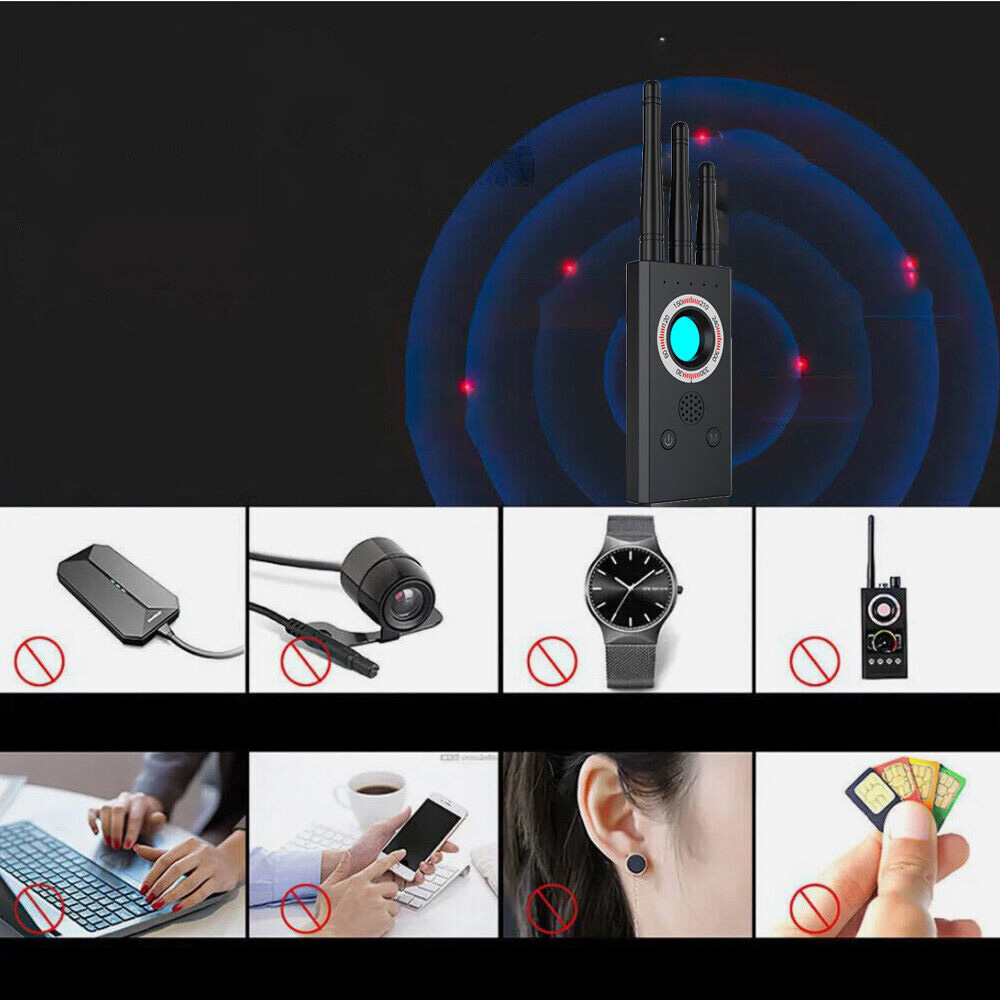【Безпека конфіденційності】Детектор помилок гарантує вашу конфіденційність і безпеку, точно виявляючи прослуховування телефонів, конференцій, GPS-трекерів, автомобілів, бездротових міні-камер, дротових камер тощо. Ефективно запобігає витоку даних у різних місцях, таких як будинки, готелі, шафи, спальні, ванні кімнати, офіси, конференц-зали та автомобілі. стільникові мережі (2G, 3G, 4G, 5G), бездротові приховані камери та пристрої для прослуховування. Виявляє радіочастотні сигнали від 1 МГц до 6,5 ГГц і має інтелектуальний чіп із потужними можливостями запобігання перешкодам і точним визначенням місця розташування джерела сигналу